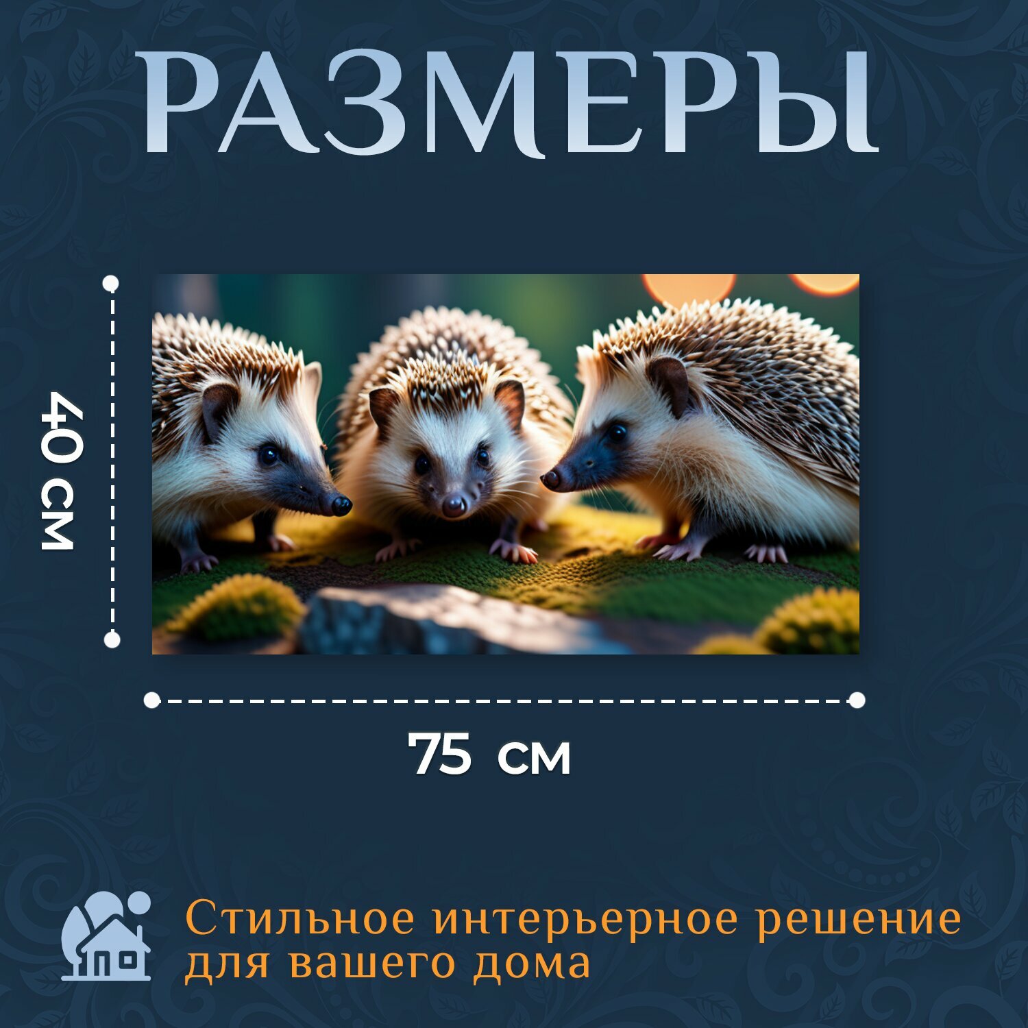 Картина на холсте "С ежиками, " на подрамнике 75х40 см. для интерьера интересное: