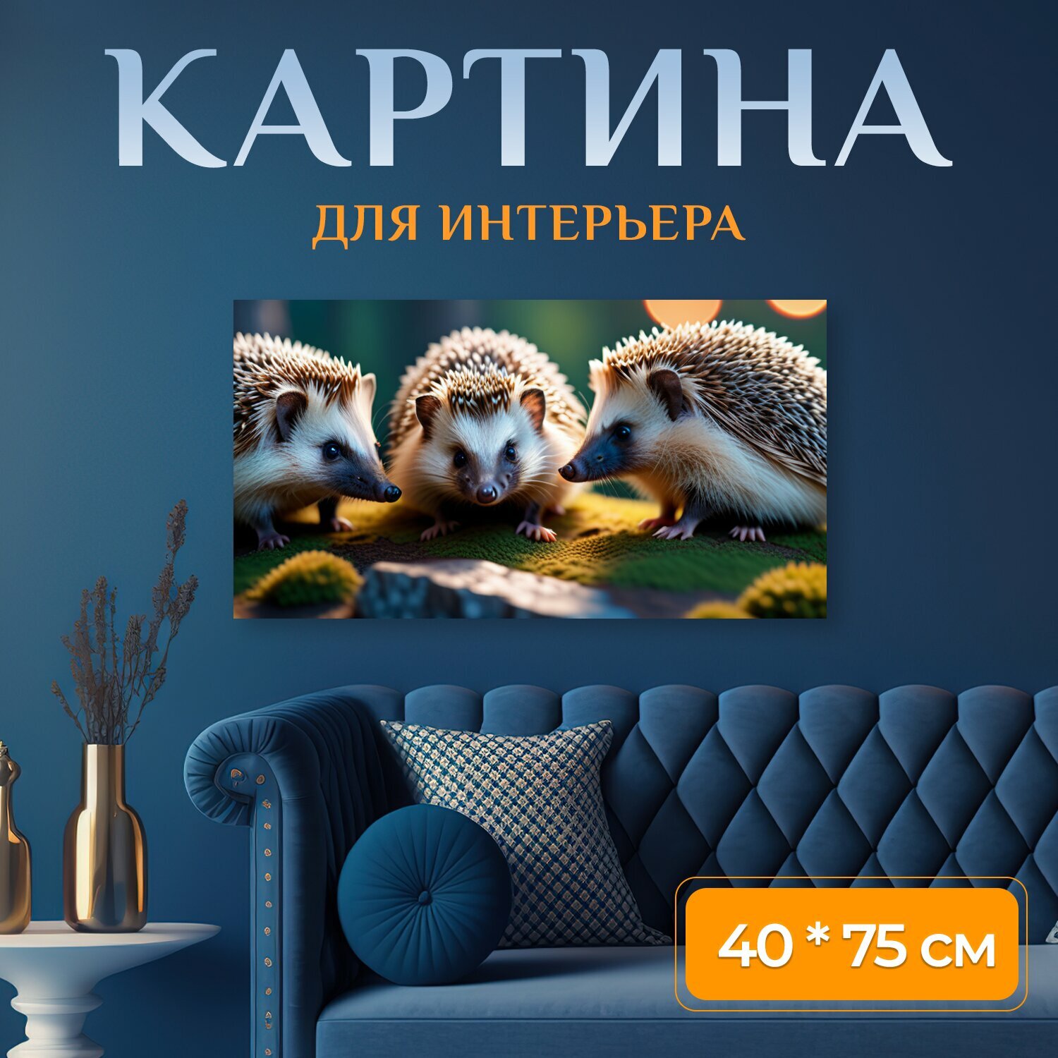 Купить Картина на холсте "С ежиками, " на подрамнике 75х40 см. для интерьера