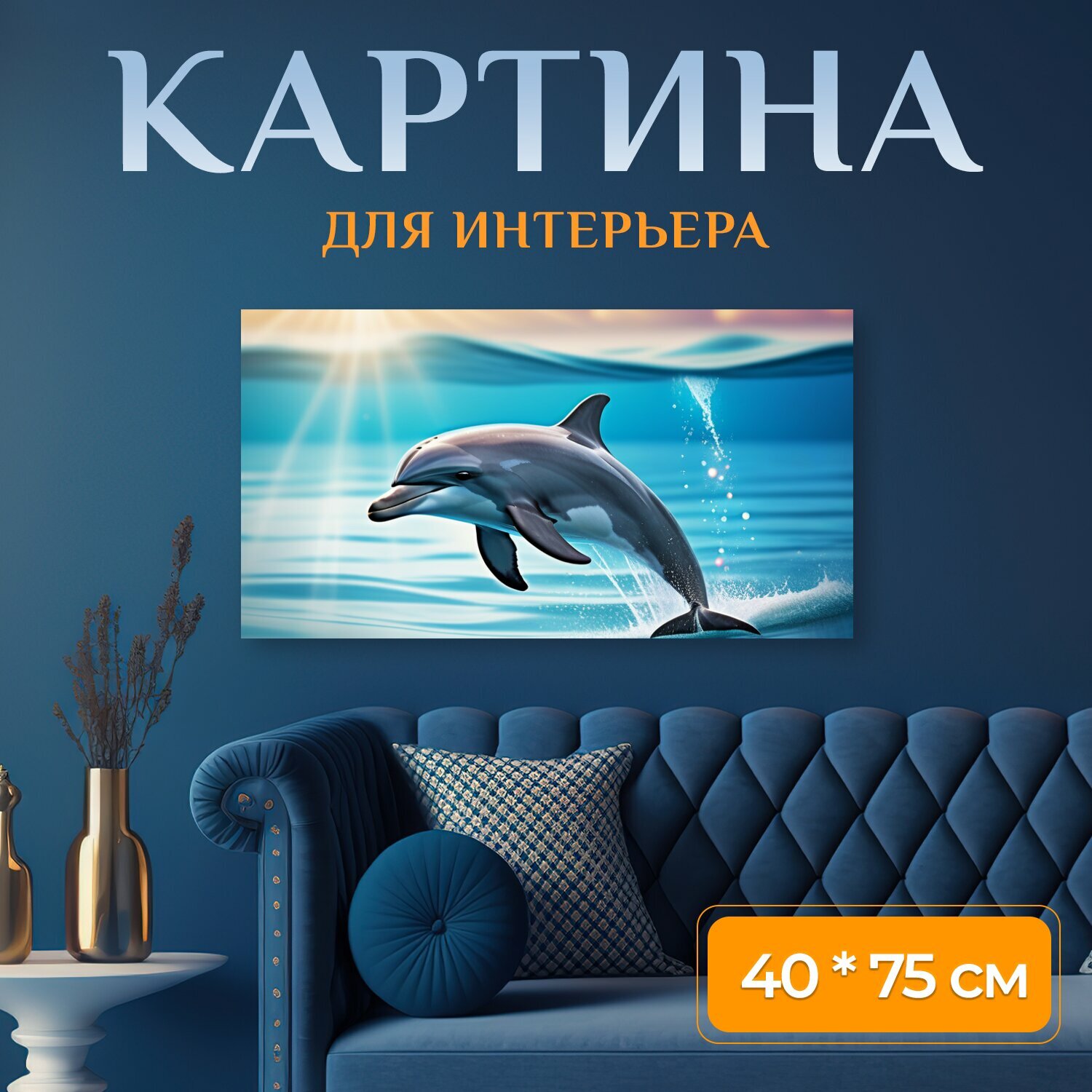 Купить Картина на холсте "С дельфином смешной, " на подрамнике 75х40 см. для интерьера