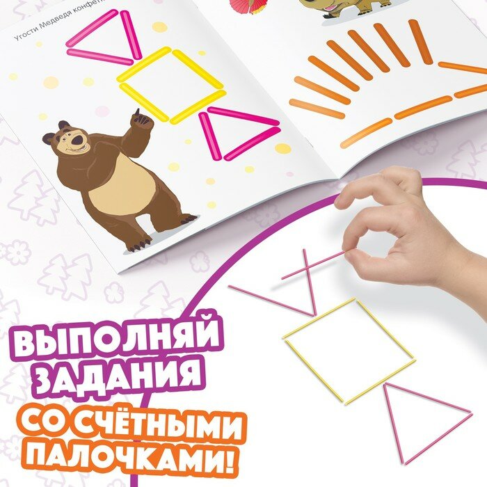 Набор «Весёлые картинки из счётных палочек»: книга 24 стр., 17 × 24 см, + 100 палочек, Маша и Медведь интересное:
