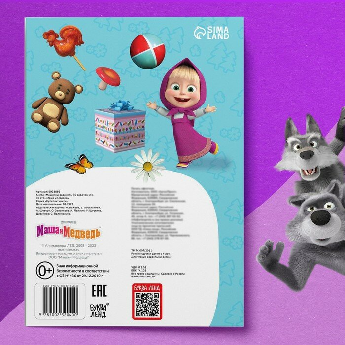 Купить Книга «Машкины задачки», 75 задачек, А4, 36 стр., Маша и Медведь