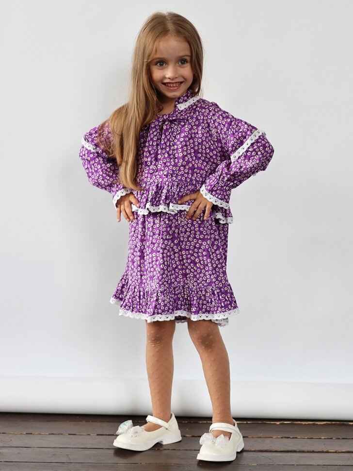 Купить Платье для девочки нарядное бушон ST60, цвет фиолетовый (116-122)