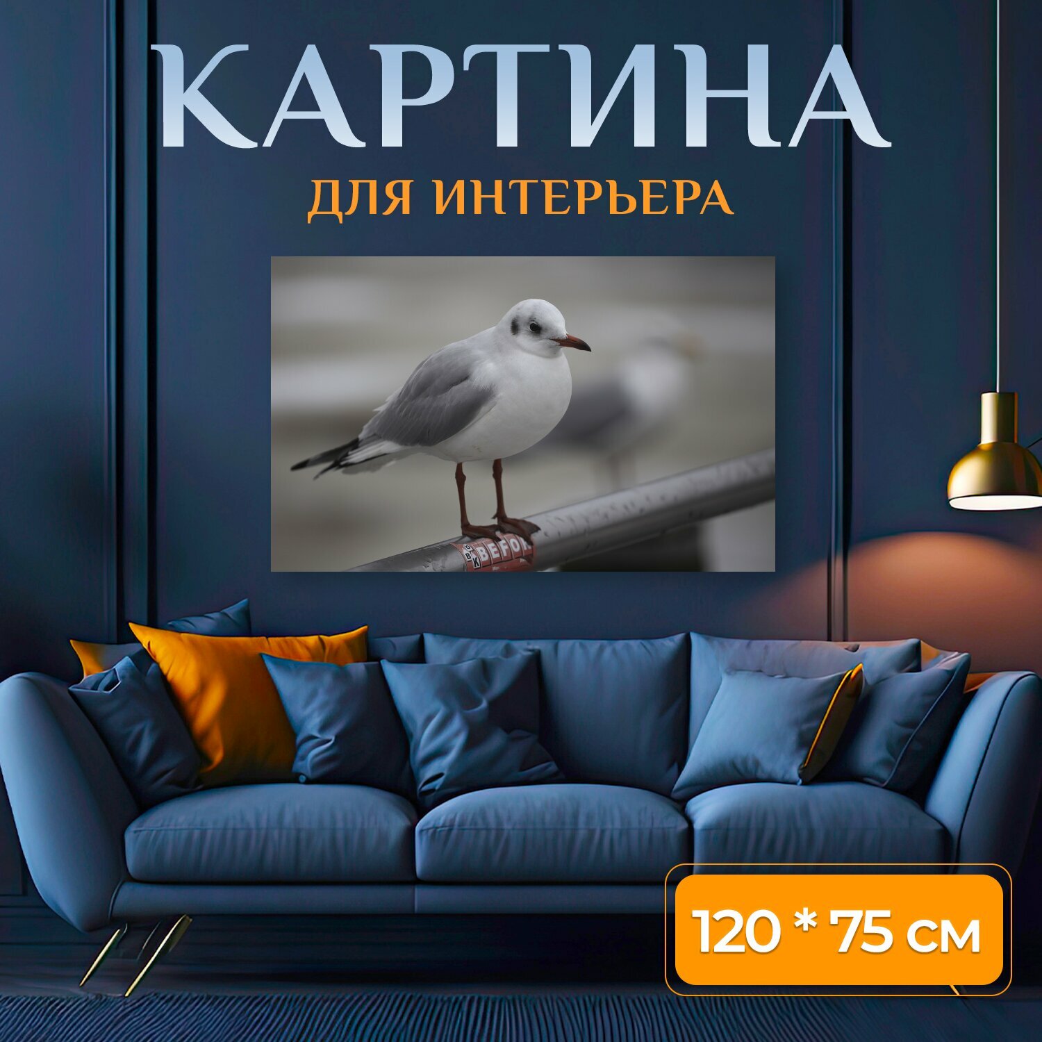 Картина на холсте "Чайка, сидя, птица" на подрамнике 120х75 см. для интерьера интересное: