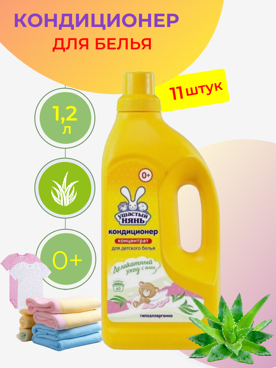 Купить Ушастый нянь - Кондиционер для белья Алое, 1,2 л - 11 шт