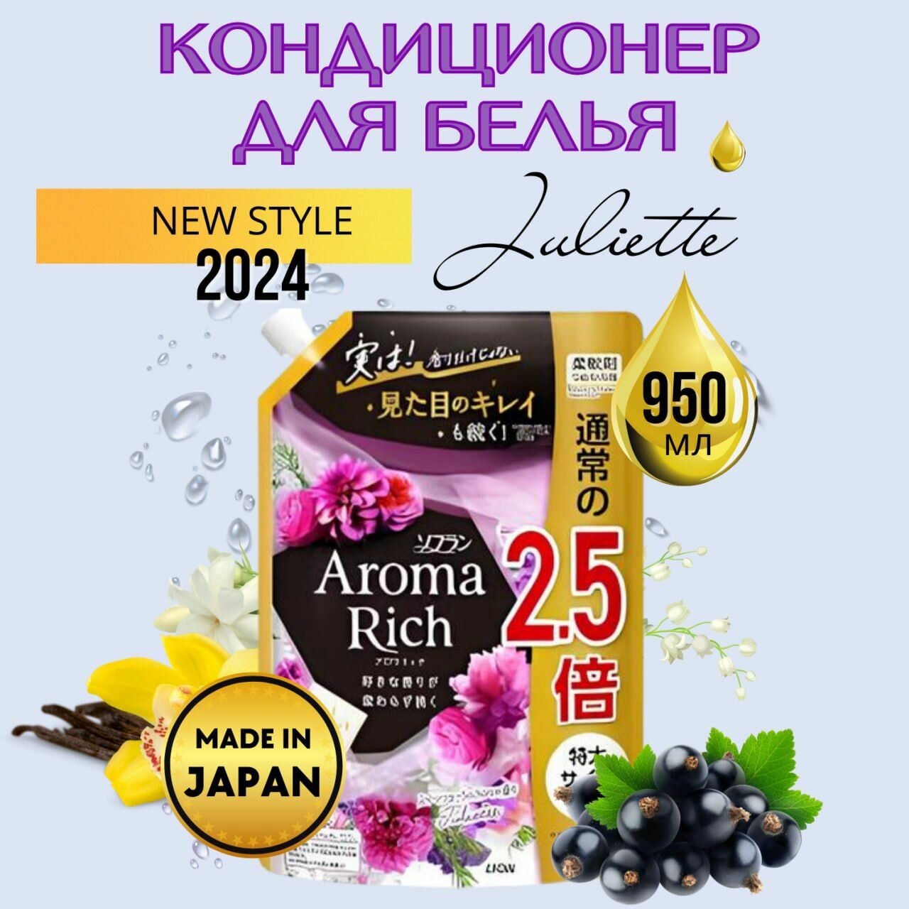 LION Кондиционер для белья Джульетт формула сохранения неизменного аромата и красоты тканей / с натуральными маслами Aroma Rich Juliette 814 950 мл, мягкая упаковка с крышкой