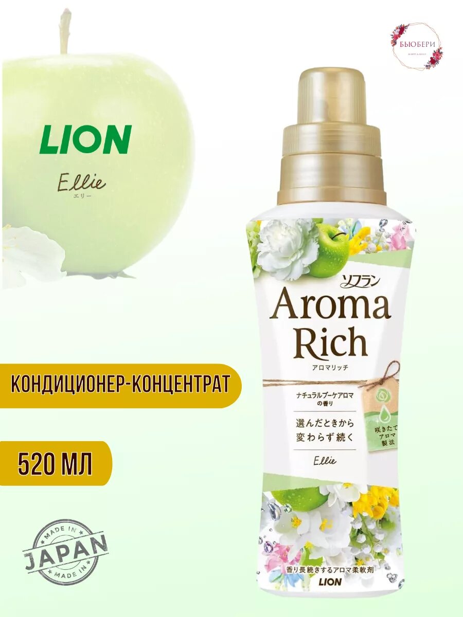 Купить Кондиционер для белья LION "Aroma Rich Ellie" / "Элли" длительного действия с богатым ароматом натуральных масел 520 мл