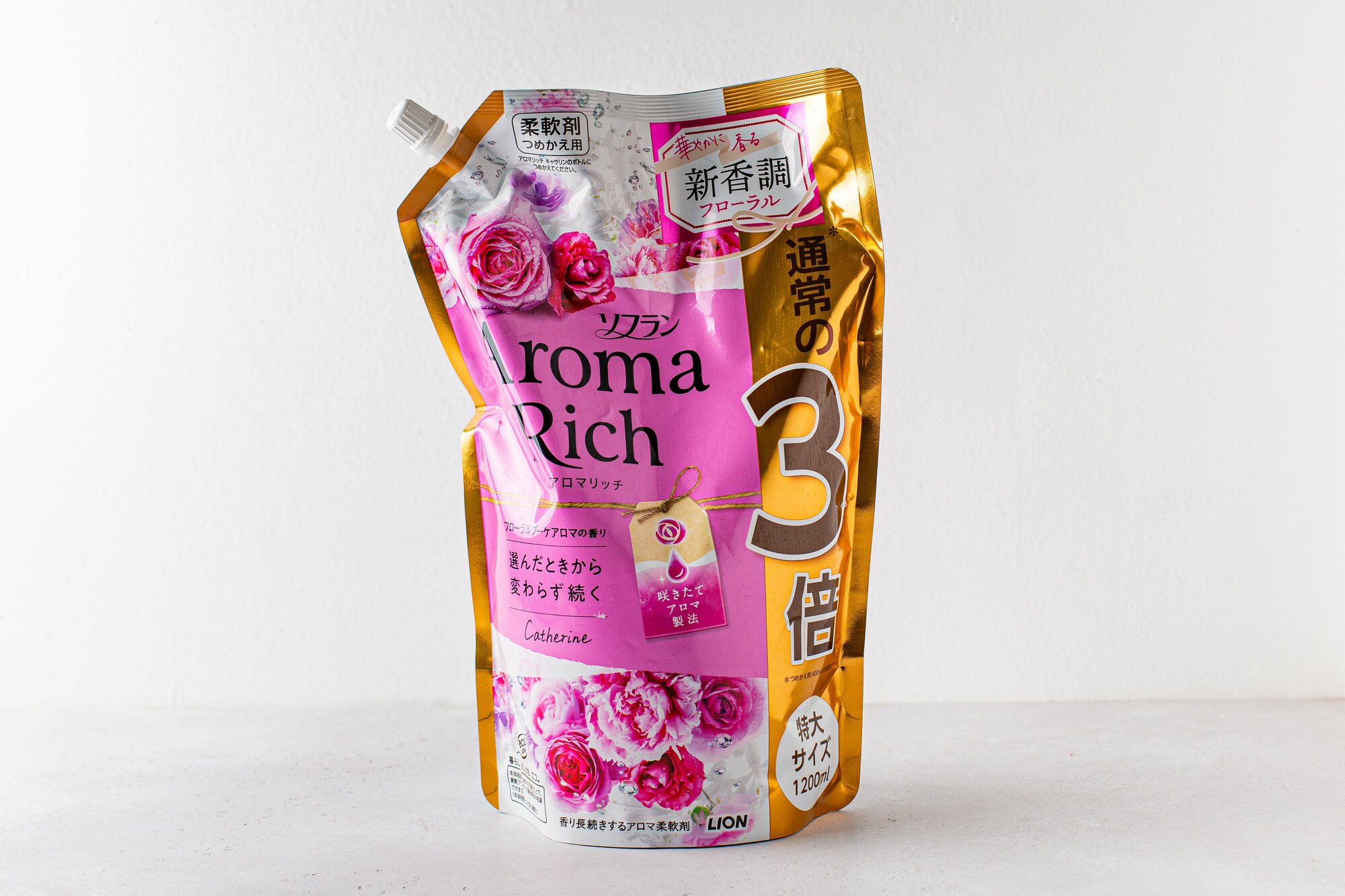 LION Кондиционер для белья Кэтрин формула сохранения неизменного аромата и красоты тканей / с натуральными маслами Aroma Rich Catherine 380 мл, мягкая упаковка