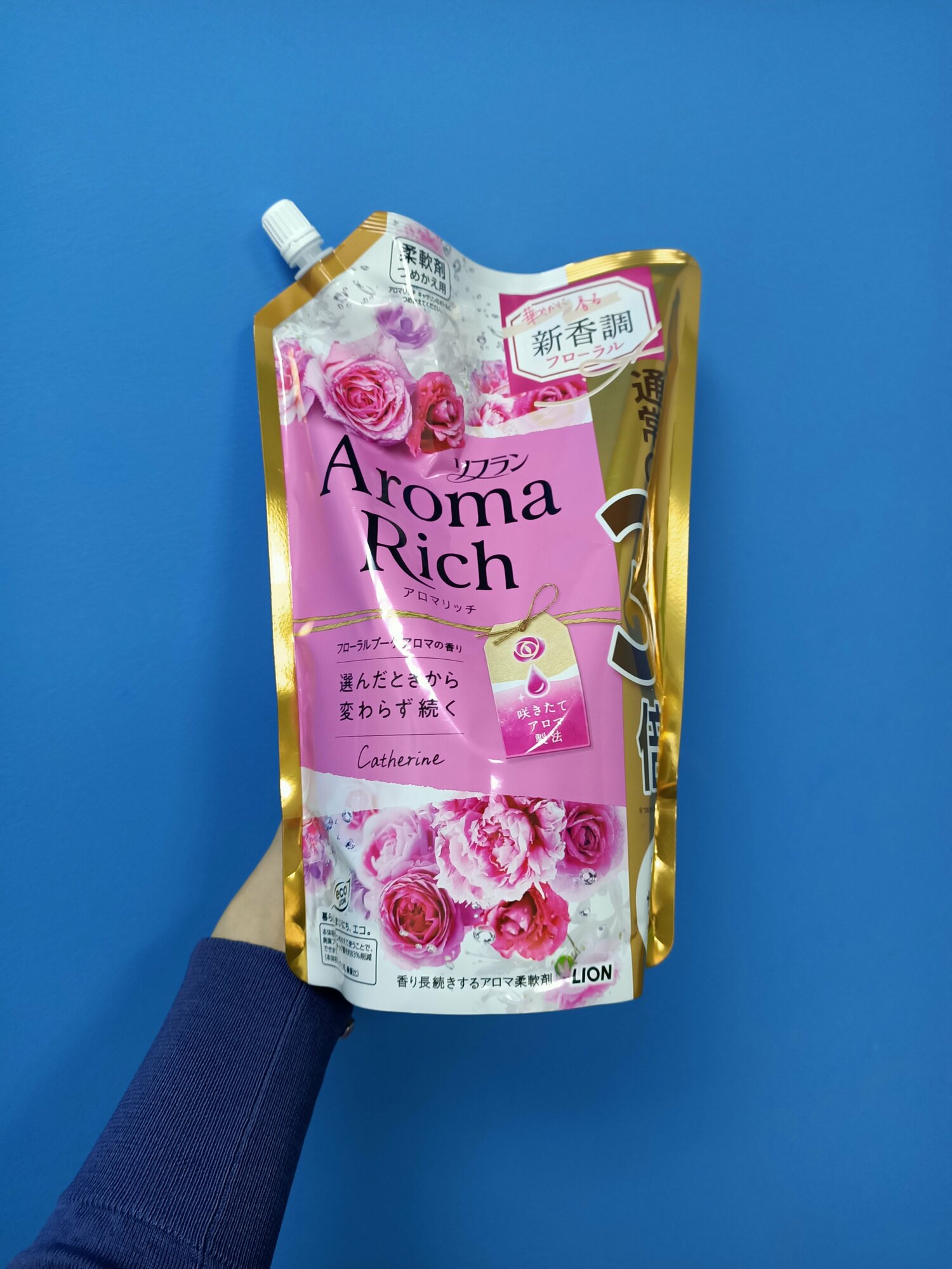 LION Кондиционер для белья Кэтрин формула сохранения неизменного аромата и красоты тканей / с натуральными маслами Aroma Rich Catherine 950 мл, мягкая упаковка с крышкой