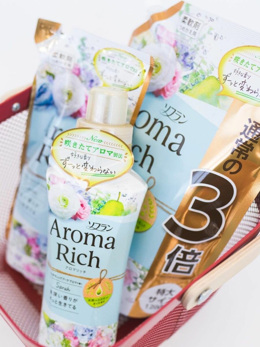 LION Кондиционер для белья Сара формула сохранения неизменного аромата и красоты тканей / с натуральными маслами Aroma Rich Sarah 380 мл, мягкая упаковка
