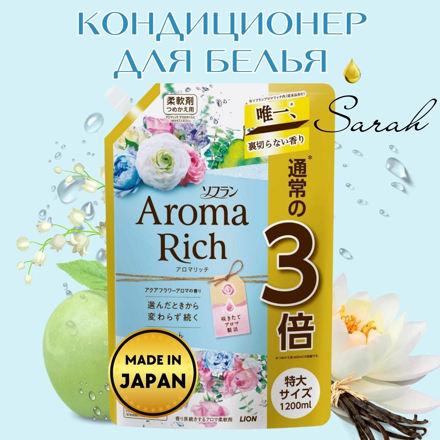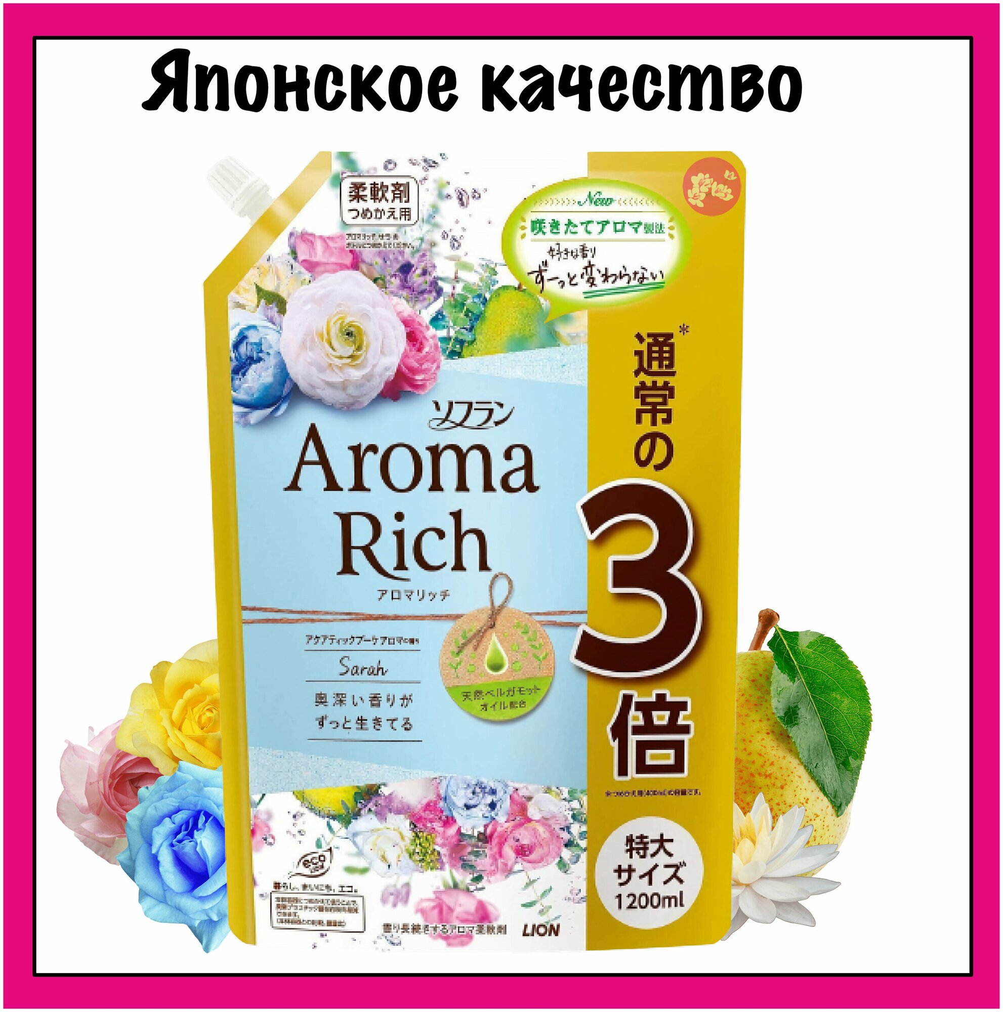 Купить Кондиционер для белья Lion Aroma Rich Sarah с ароматом натуральных масел 1200мл