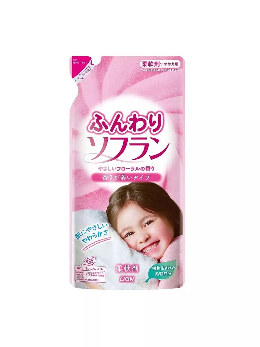 LION Кондиционер для белья Soflan Aroma Natural аромат цветочного мыла, сменная упаковка 420 мл.