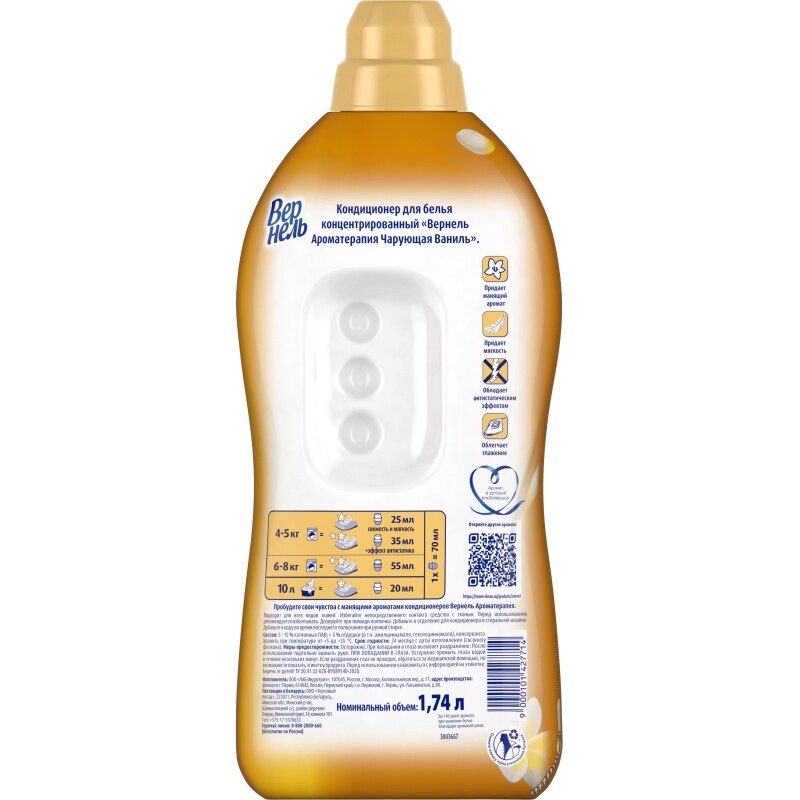 "Чарующая ваниль" - концентрированный кондиционер для белья от бренда Vernel, объем 1.74 л