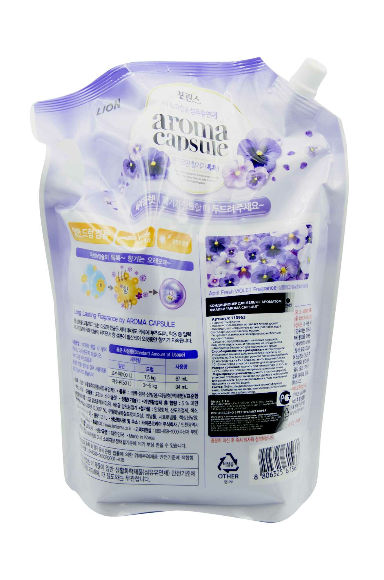 LION AROMA CAPSULE Кондиционер для белья с ароматом фиалки 2100г