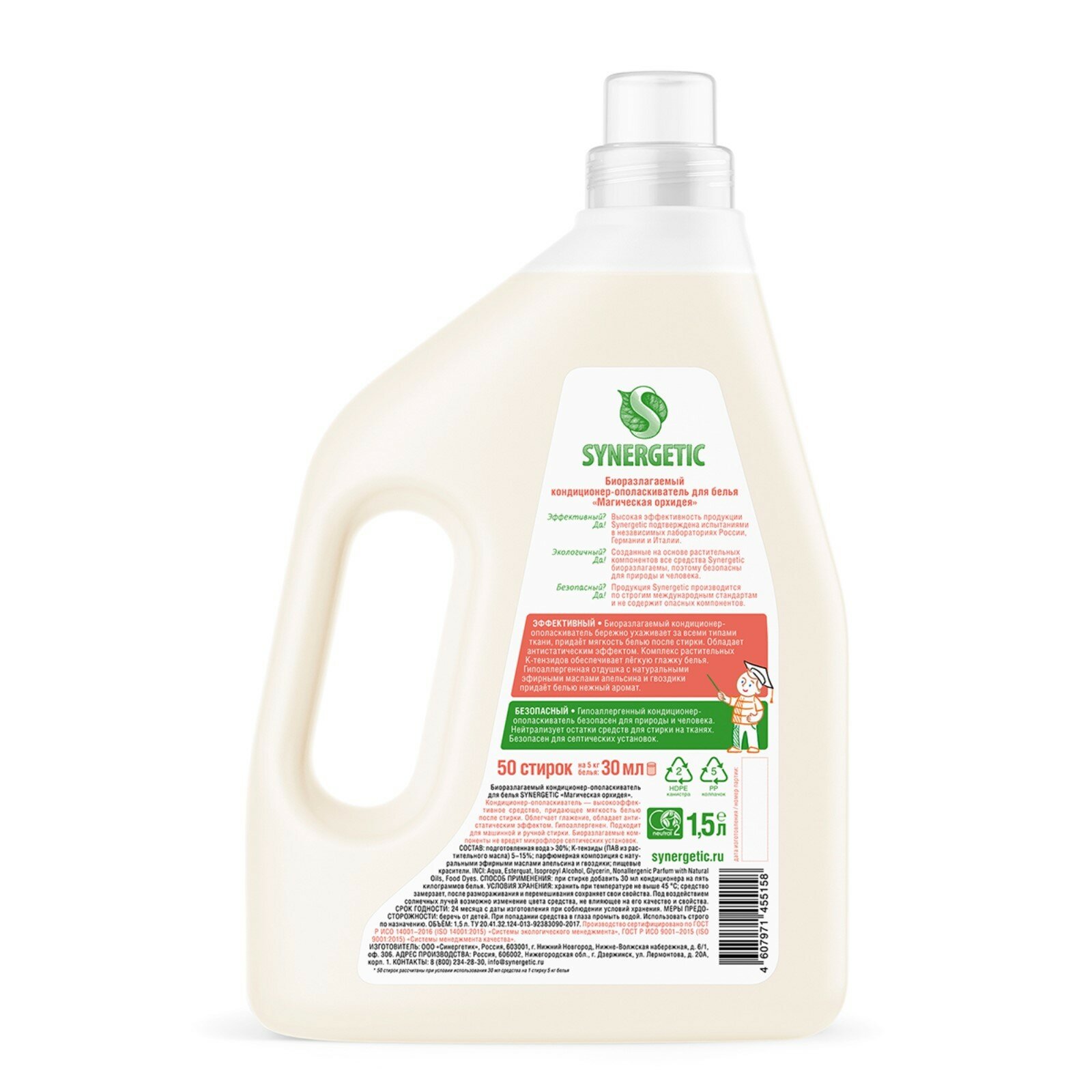 Кондиционер-ополаскиватель для белья SYNERGETIC "Магическая орхидея" гипоаллергенный, биоразлагаемый, 1,5л, 50 стирок