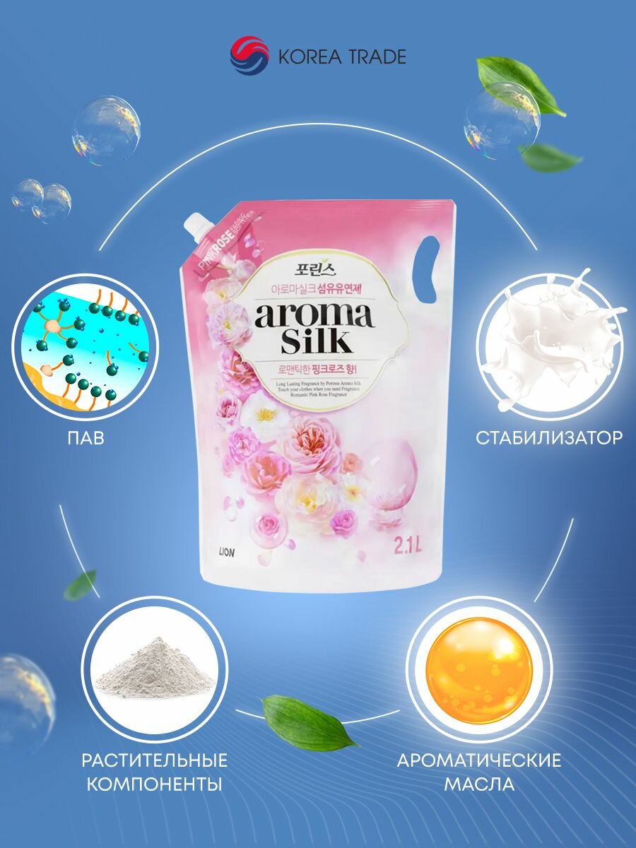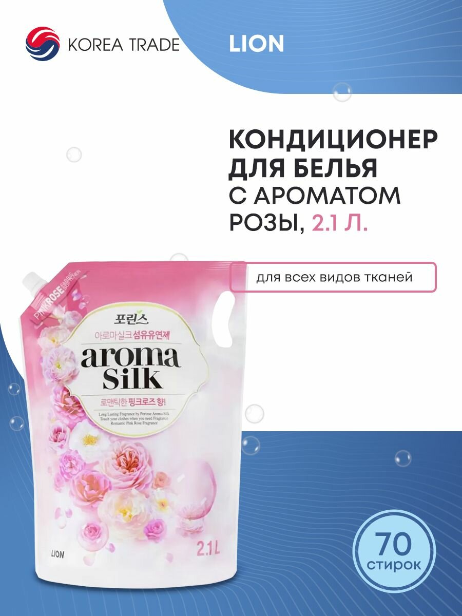 LION Кондиционер для белья с ароматом розы «АROMA SILK», мягкая упаковка, 2100 мл