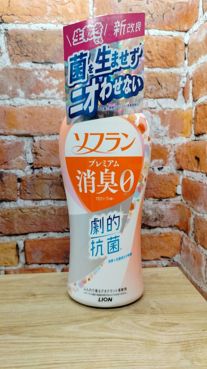 LION Кондиционер для белья SOFLAN с мощным антибактериальным эффектом для защиты от неприятного запаха Premium Deodorizer 204 - натуральный аромат цветочного мыла, 380 мл