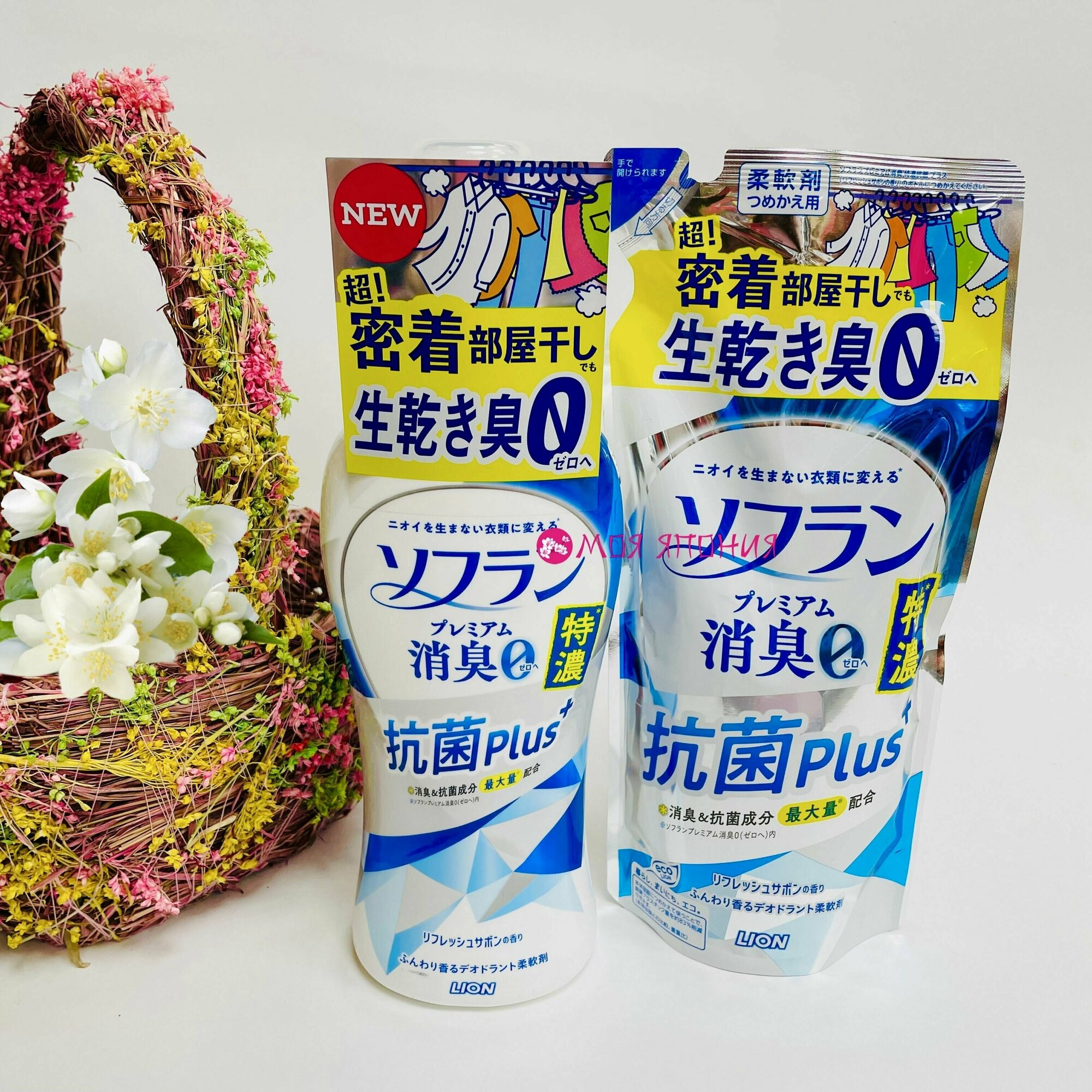 Купить Lion Soflan Японский кондиционер для белья защищающий от неприятного запаха, аромат жасмина и акватики Premium Deodorizer Zero, 540мл. (бутылка) + 400мл. (мягкая уп.)