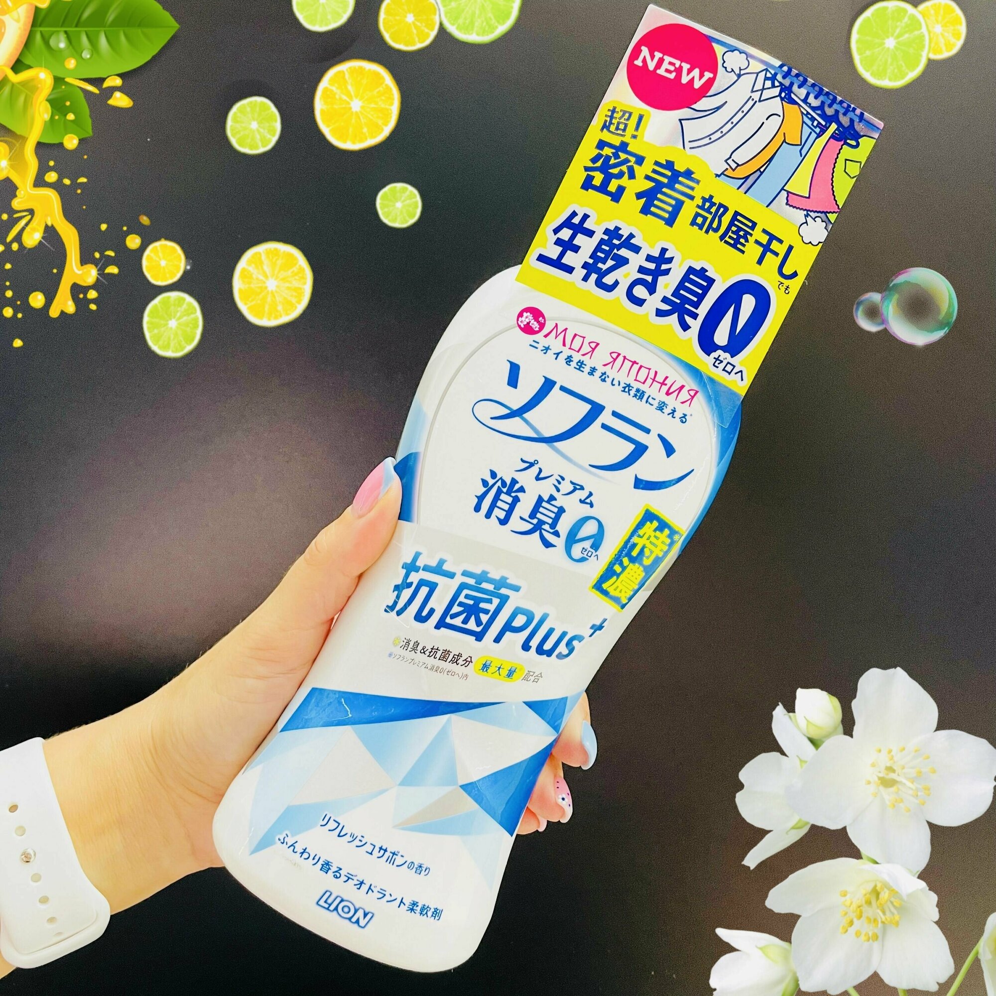 Lion Soflan Premium Deodorizer Zero 0 Кондиционер для белья защищающий от неприятного запаха до вечера с ароматом цитрусов и цветов 550 мл