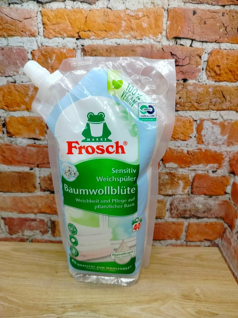 Frosch Концентрированный ополаскиватель для белья Цветы хлопка 1 л на 40 стирок в мягкой упаковке