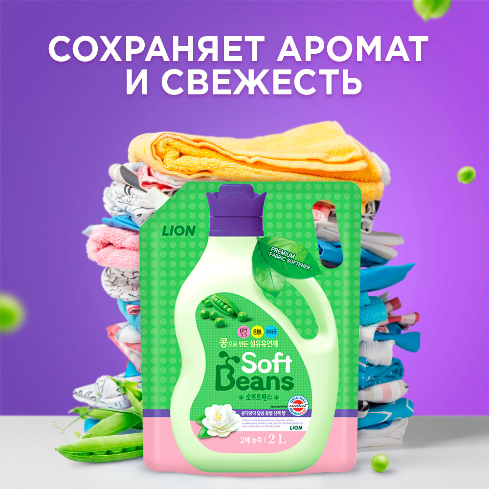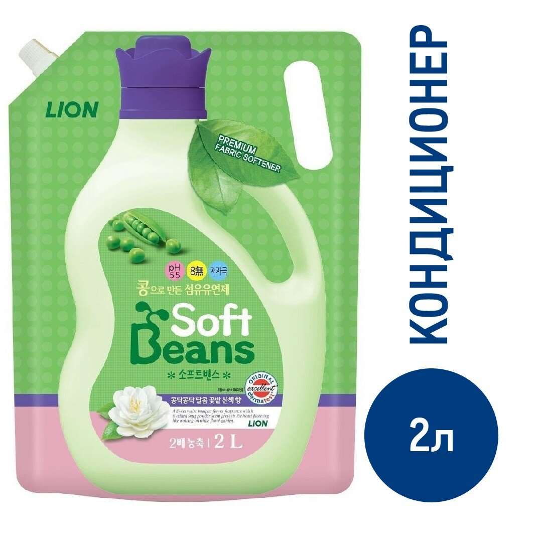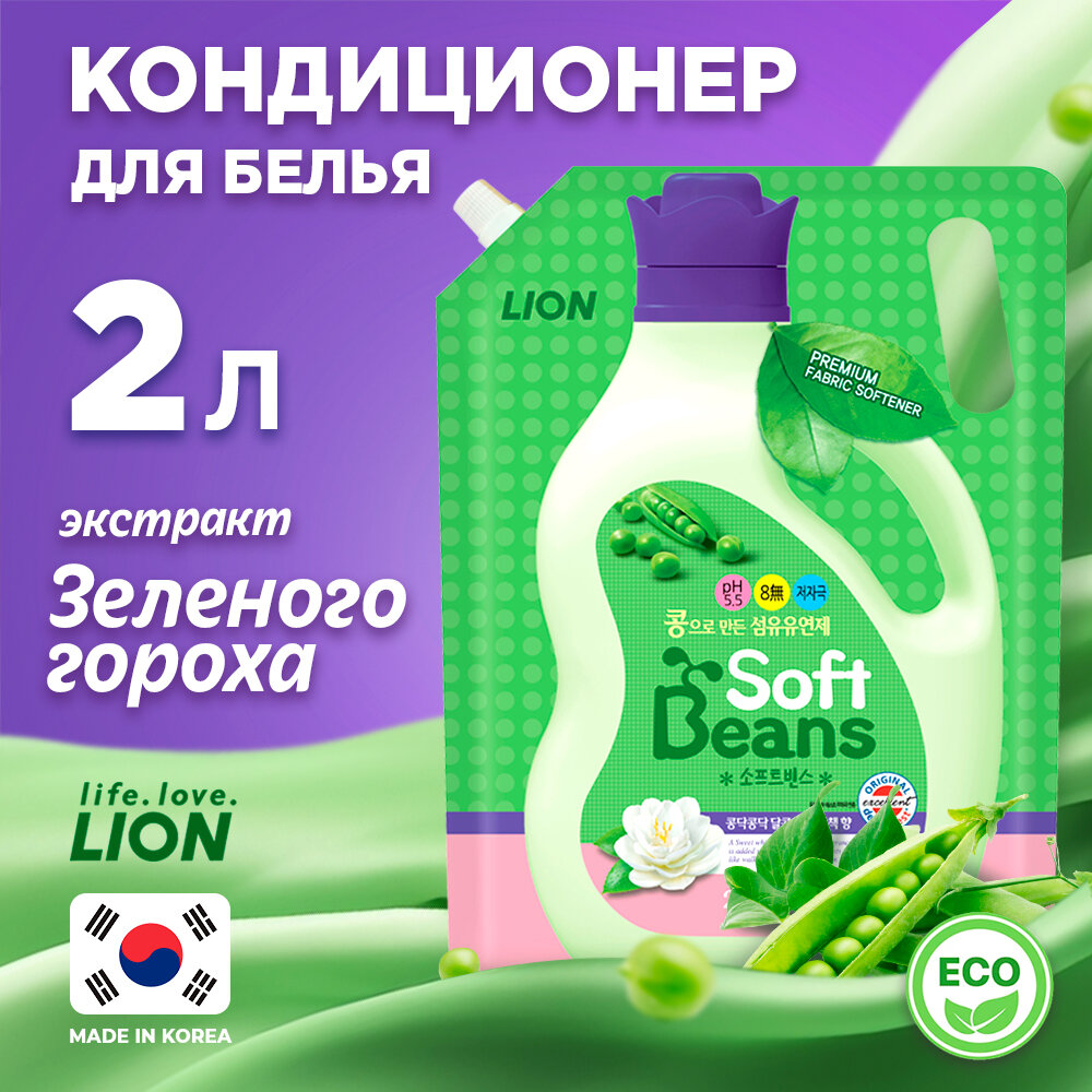 Кондиционер-ополаскиватель для белья Lion Soft Beans на основе экстракта зеленого гороха, 2 л, м/у