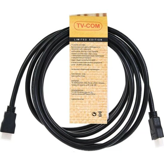 Кабель HDMI - HDMI, M/M, 3 м, v1.4, TV-COM, CG150S-3M, 1537922
