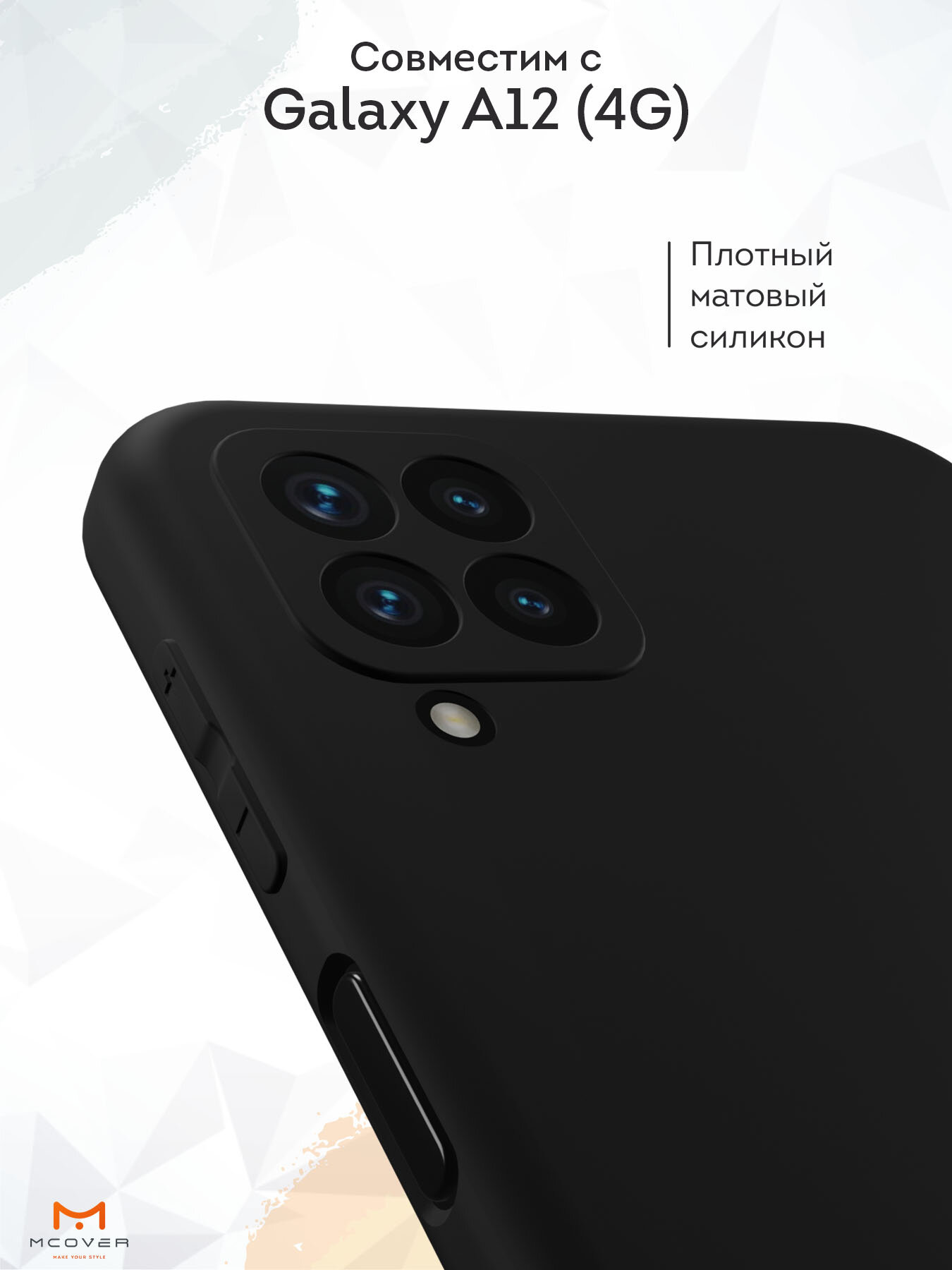 Силиконовый чехол Mcover на Galaxy A12 (для Самсунг Галакси А12), черный, с защитой камеры