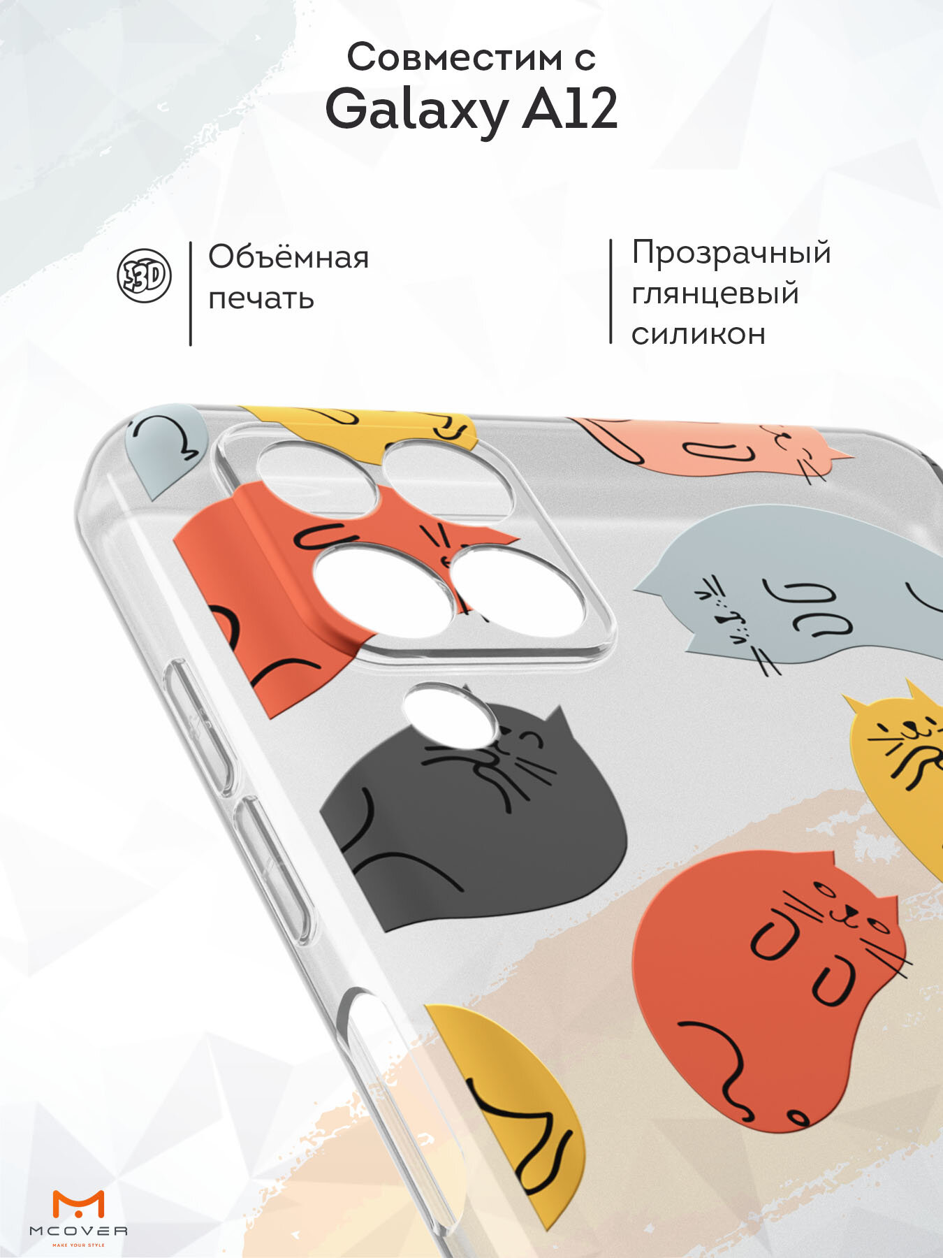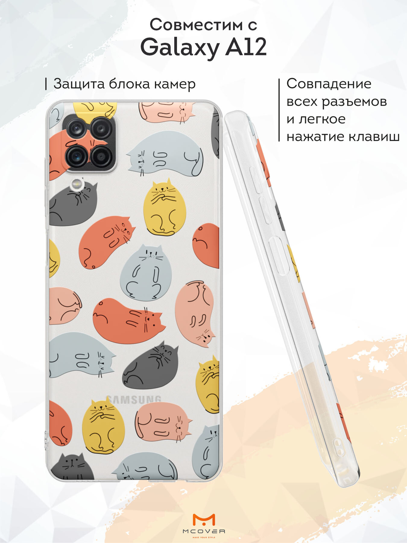 Купить Силиконовый чехол Mcover на Samsung Galaxy A12 (для Самсунг Галакси А12), Котики