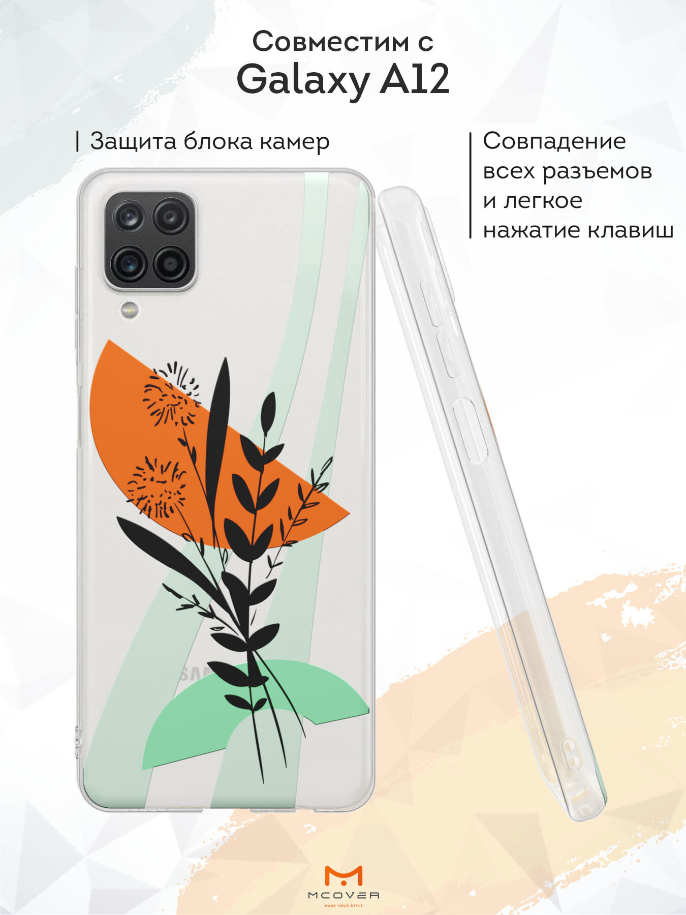 Силиконовый чехол Mcover на Samsung Galaxy A12 (для Самсунг Галакси А12), Грибочки и цветочки