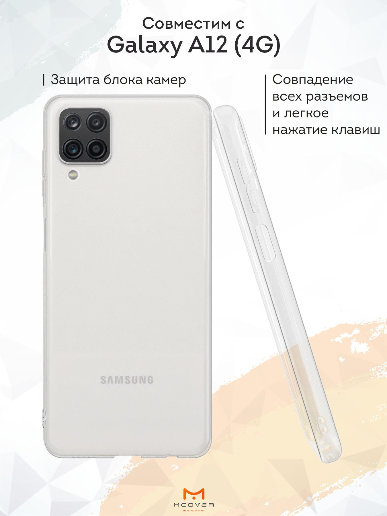 Купить Силиконовый чехол Mcover на Samsung Galaxy A12 (для Самсунг Галакси А12), прозрачный, с защитой камеры