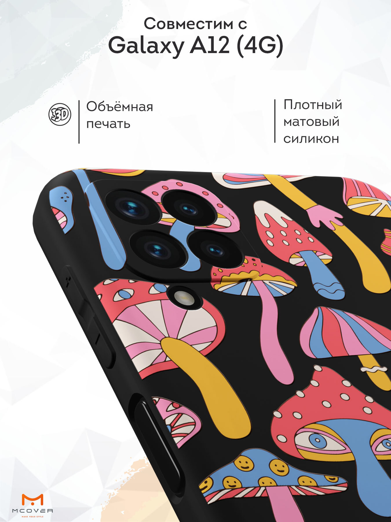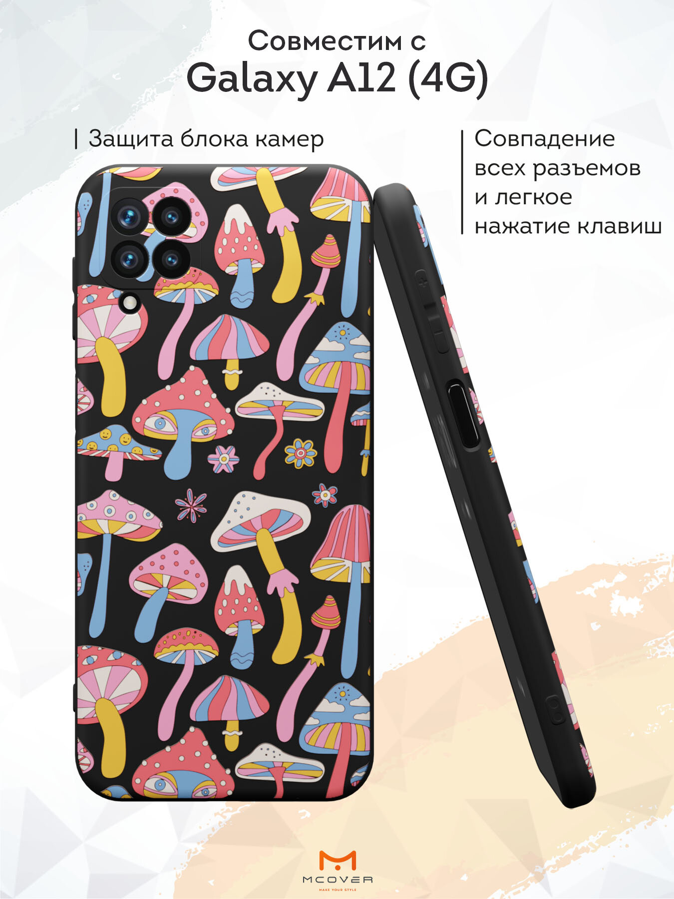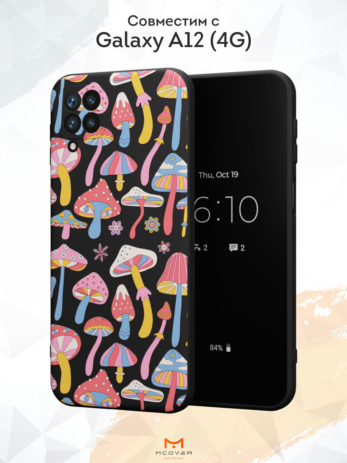 СохранитьСиликоновый чехол Mcover на Samsung Galaxy A12 (для Самсунг Галакси А12), Разноцветные грибы интересное: