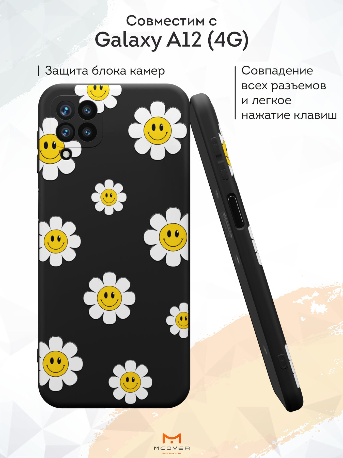 Силиконовый чехол Mcover на Galaxy A12 (для Самсунг Галакси А12), Ромашки смайлик