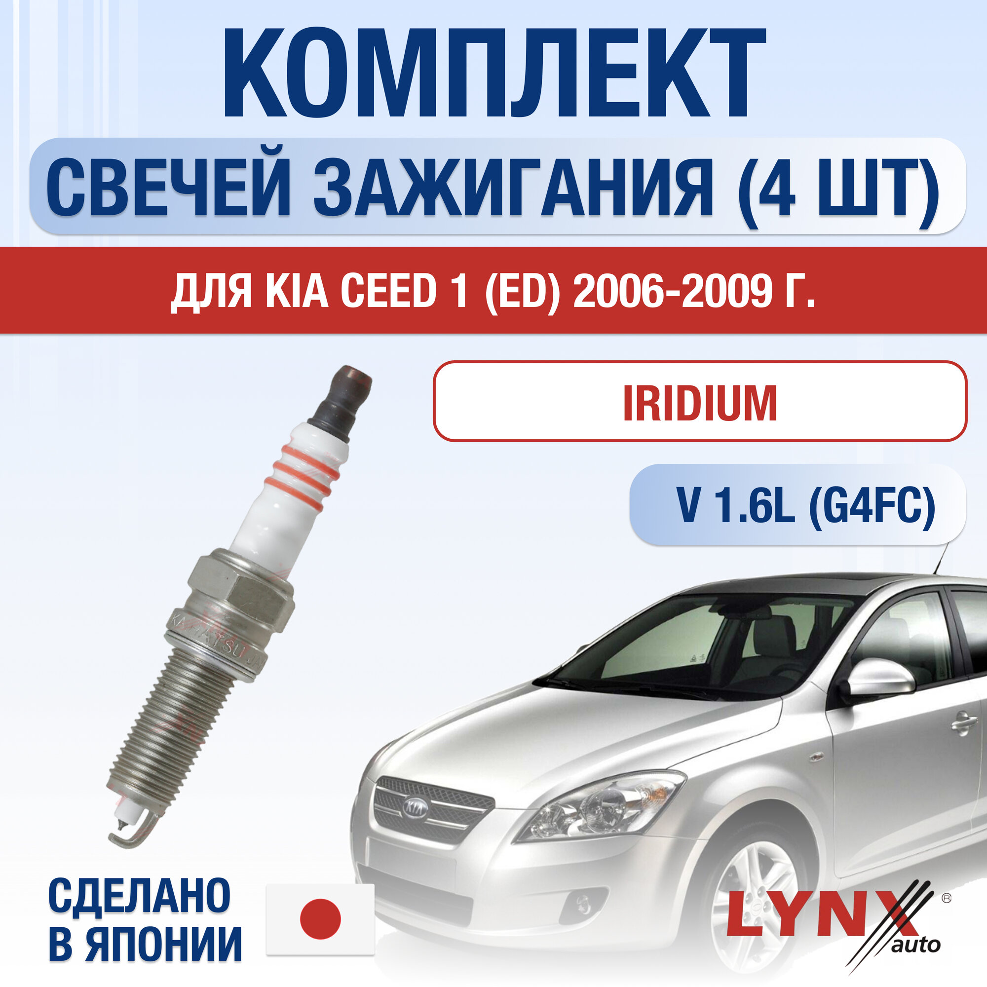 Свечи зажигания для Kia Ceed (1) ED, набор 4 шт / 2006 2007 2008 2009 / 1.6 / Двигатель G4FC 1,6 л / Комплект свечей Иридий Киа Сид интересное: