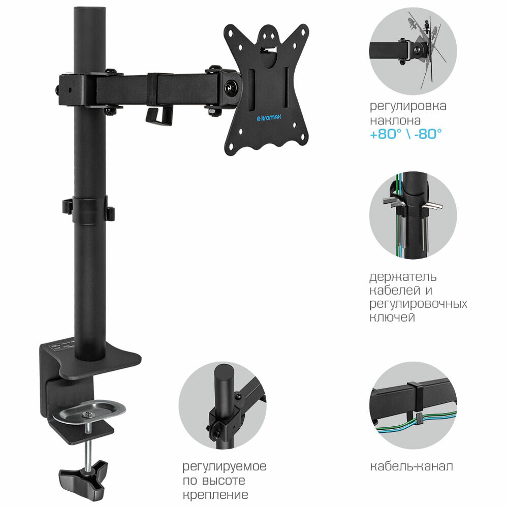 Купить Кронштейн Kromax Casper-506 10-34' до 10кг Vesa до 100x100 черный для одного монитора