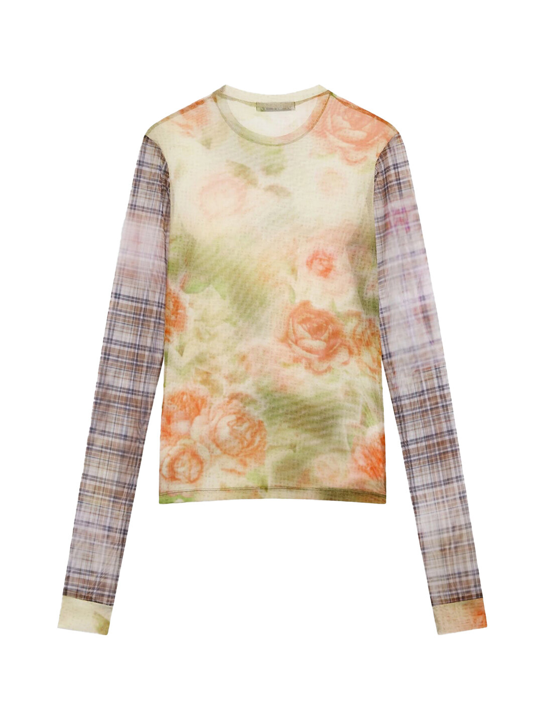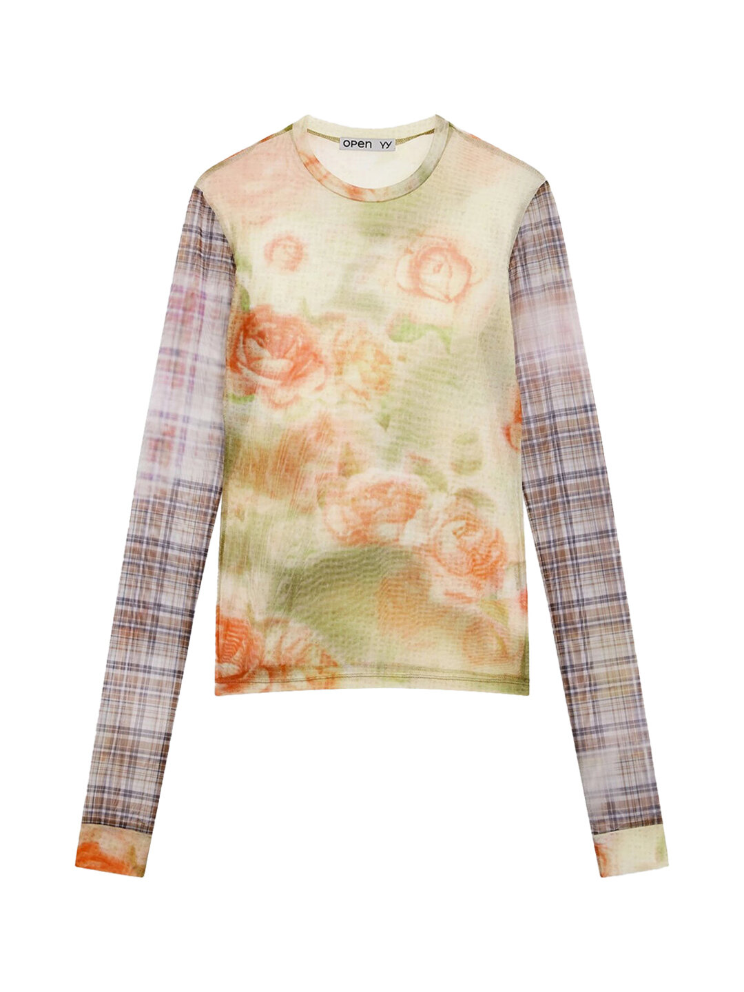 Купить Женский топ OPEN YY Floral Mesh Sleeve Top Multi, Желтый, S