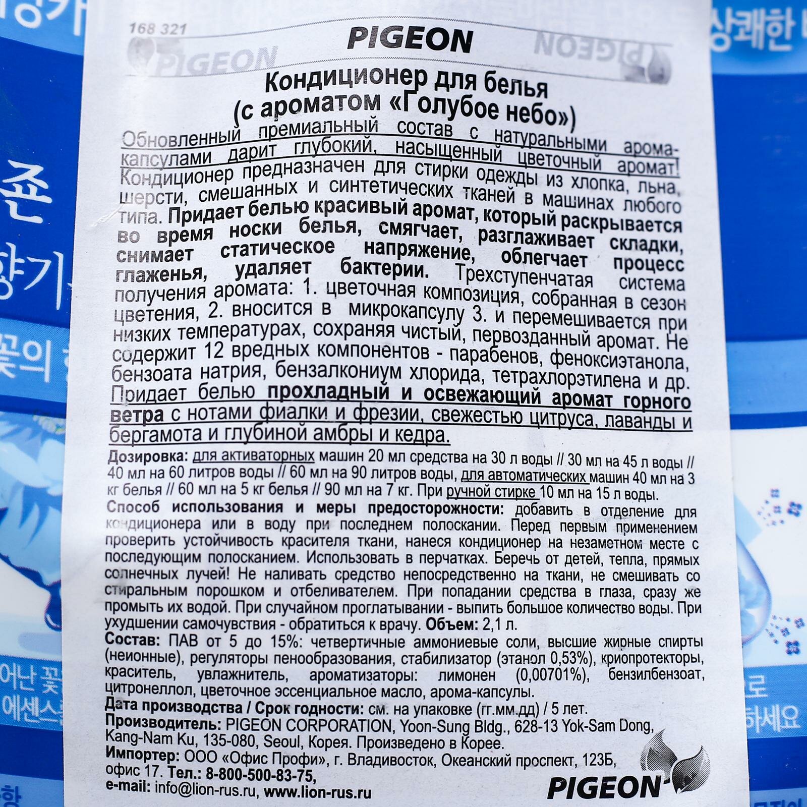 Купить Кондиционер для белья Pigeon, с ароматом «Голубое небо», 2,1 л