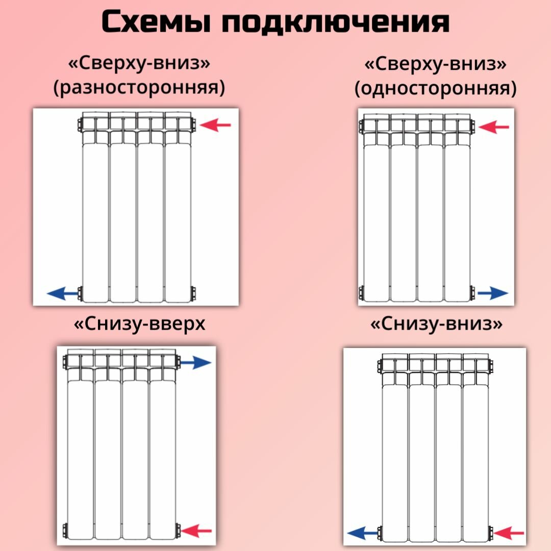 Радиатор биметаллический секционный Space 500 6 секций параметры 561х480х90 боковое подключениеСантехническая нить 20 м