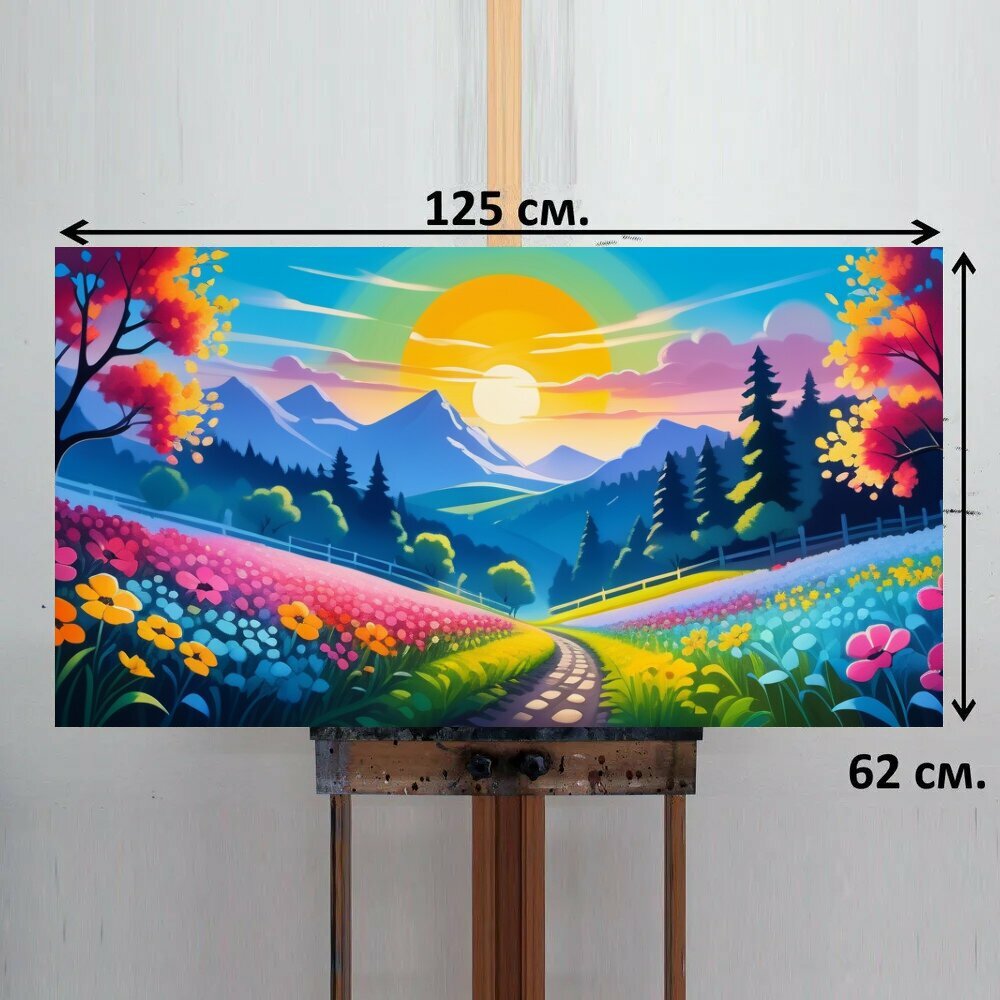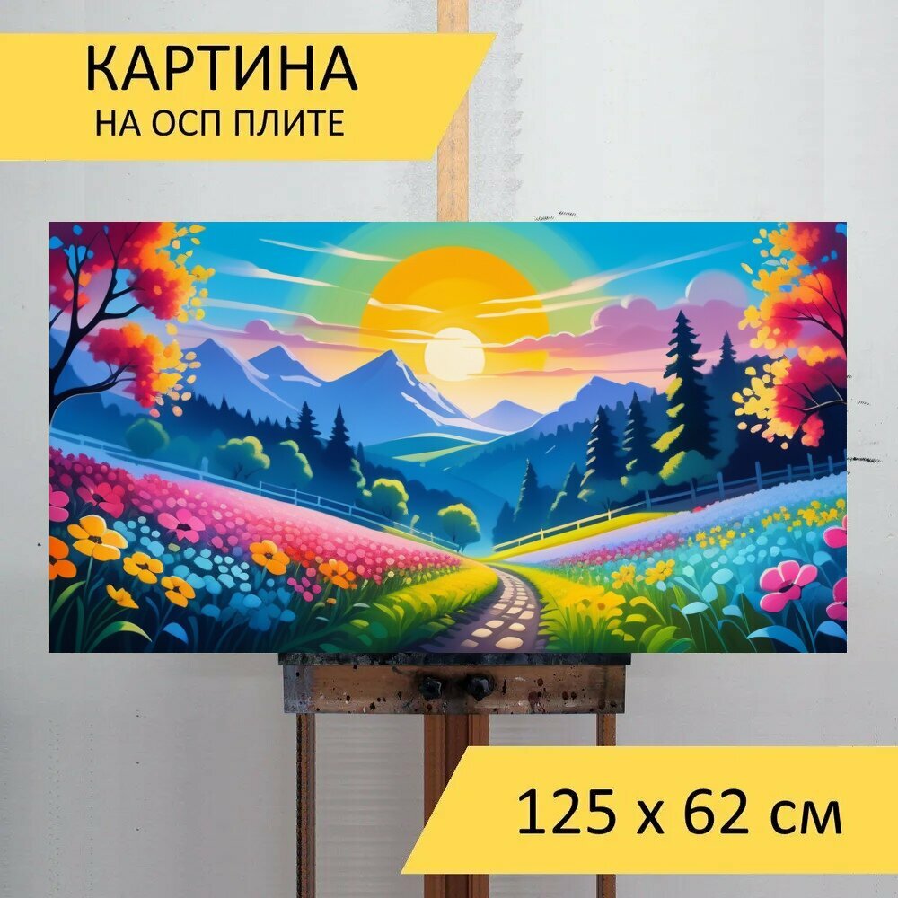 Картина на ОСП "Пейзаж с цветами гуашь смешной, " 125x62 см. для интерьера на стену интересное: