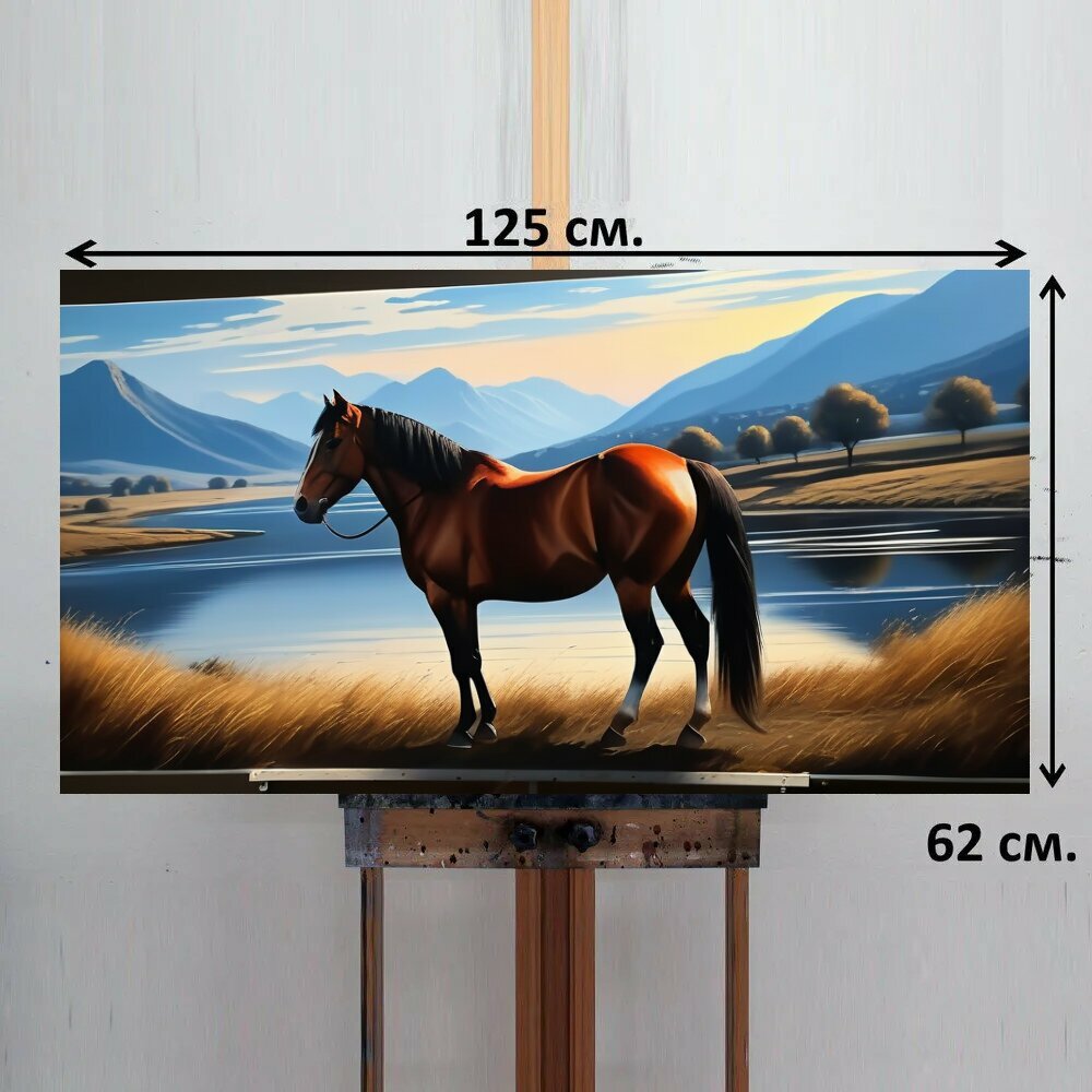 Купить Картина на ОСП "Пейзаж с лошадью легкий, " 125x62 см. для интерьера на стену