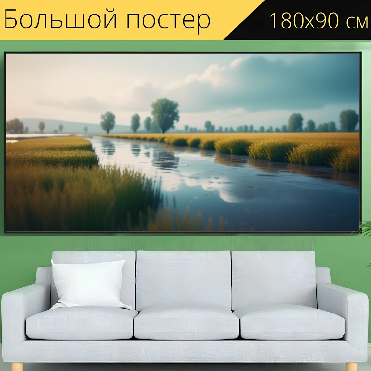 Купить Большой постер "Бродский пейзаж с наводнениями минимал, " 180 x 90 см. для интерьера на стену