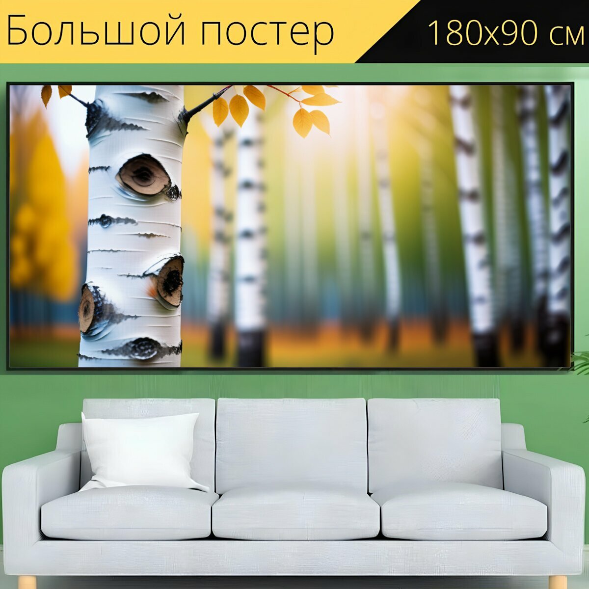 Большой постер "Фото пейзаж с березой минимал, " 180 x 90 см. для интерьера на стену интересное: