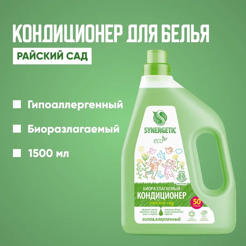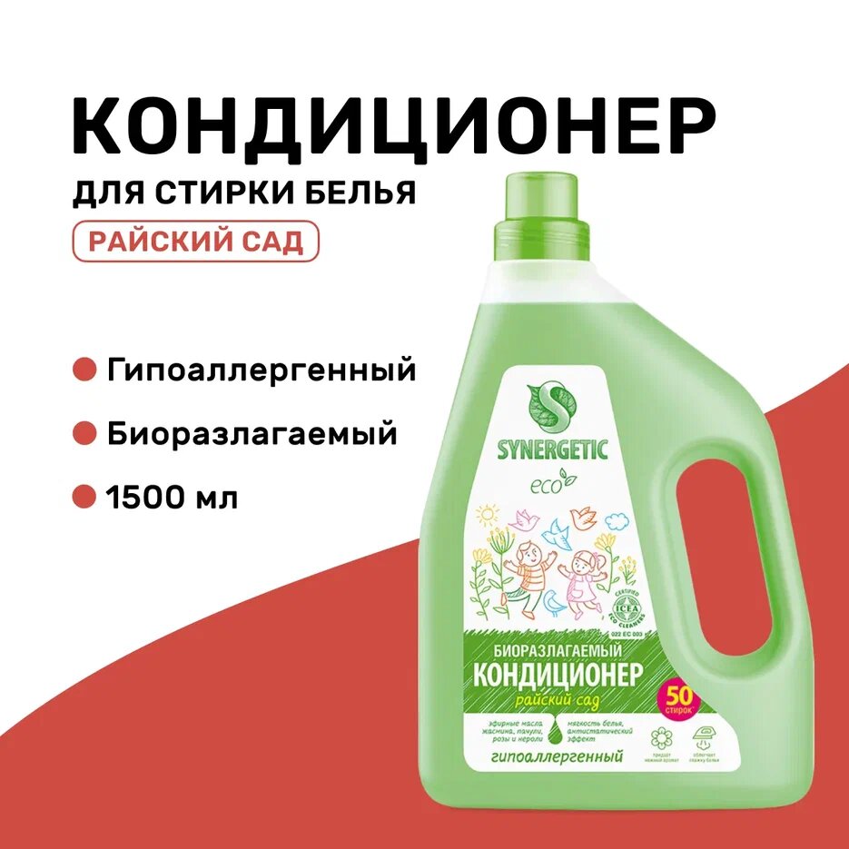 Кондиционер-ополаскиватель для белья Synergetic Райский сад, гипоаллергенный, 1.5 л