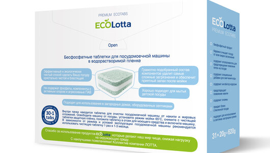 Эко таблетки для посудомоечной машины ECOLotta без фосфатов 30шт