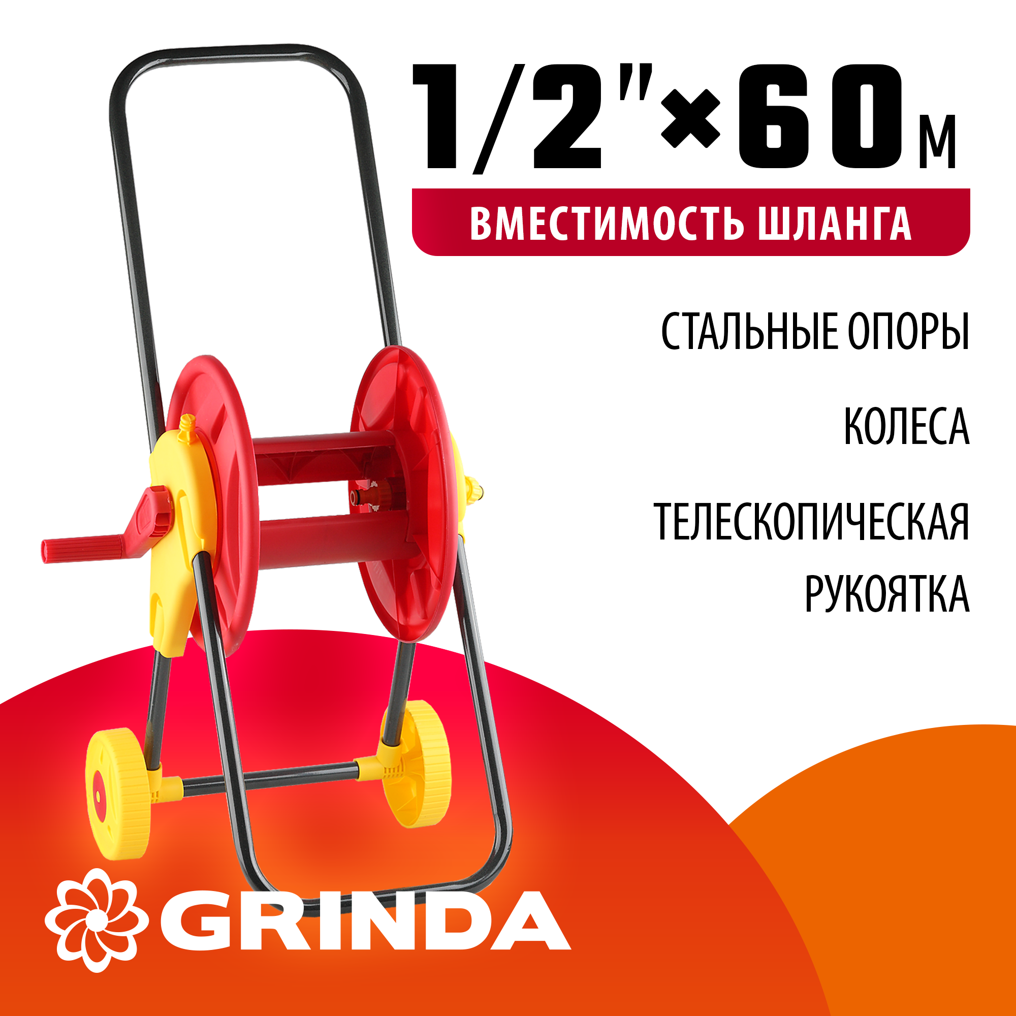 Катушка GRINDA для шланга на колесах, 60 м/1/2"
