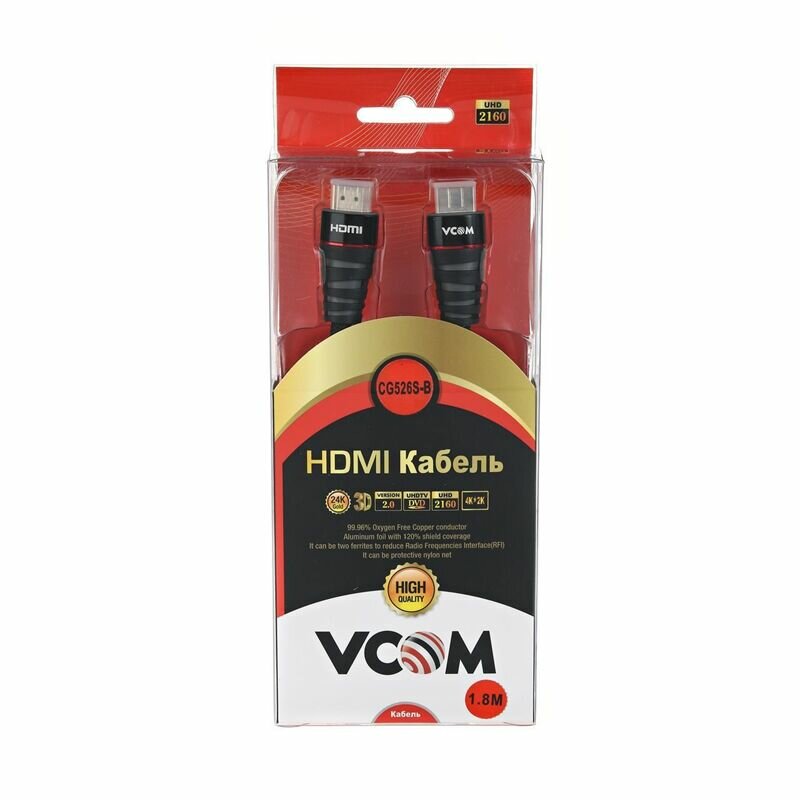 Кабель а/в VCOM 1.8m м HDMI - HDMI 2.0 CG526S-B-1.8M