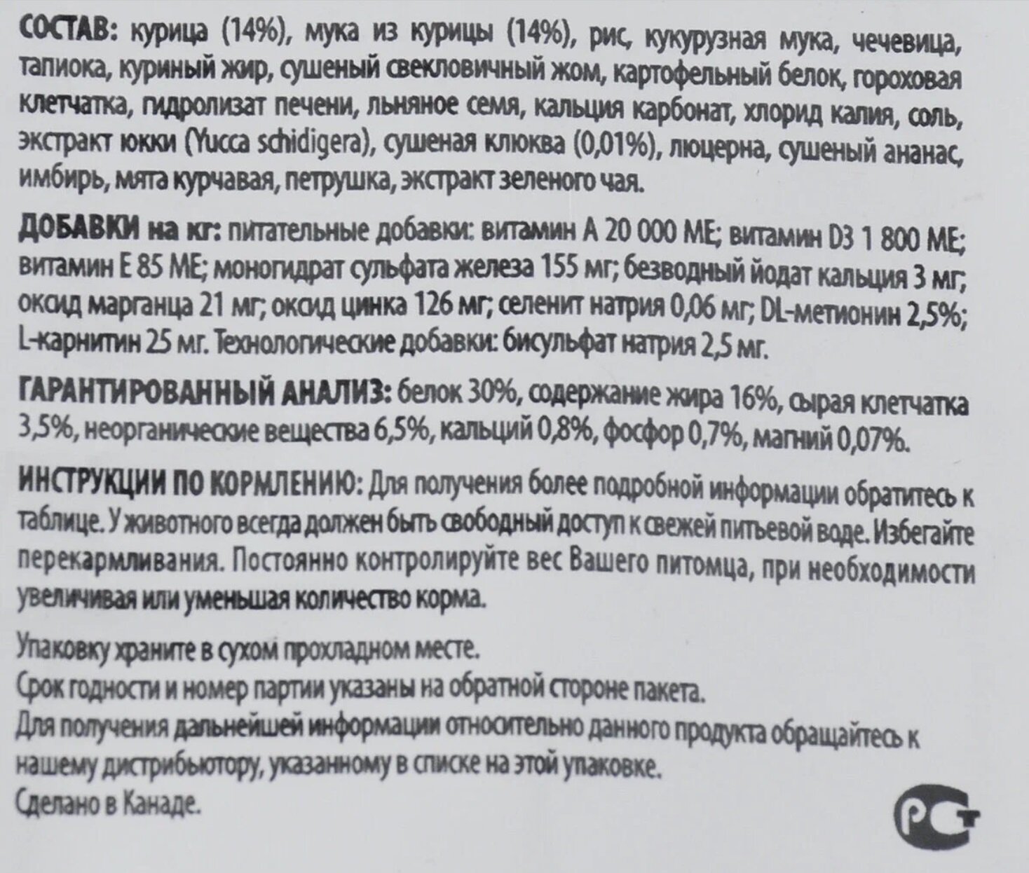 | Отзыв: | Перешли на этот корм после того, как ProPlan локализовали в РФ и на него стали поступать жалобы на его качество. Этот корм канадский , он высочайшего качества. |