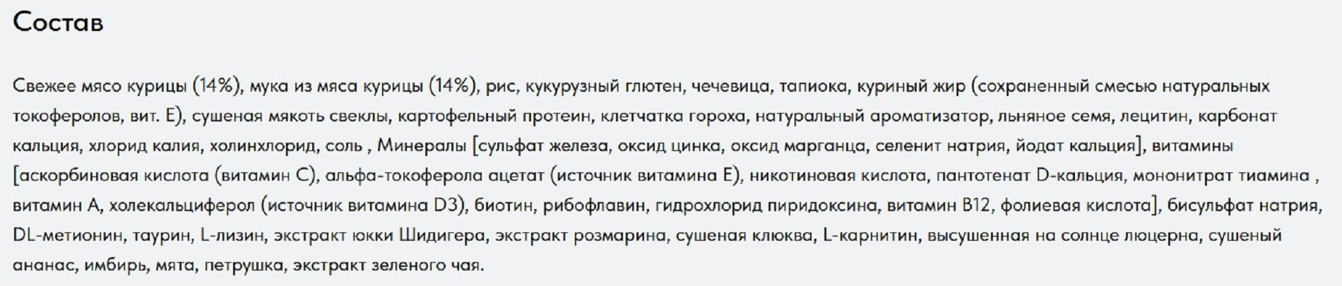 | Минусы: | Курица у 1чоиса аллергенная, у кошки вылезла аллергия, брала очень давно обычный но на ягененке ибо на курицу была аллергия, за 5 лет не изменился состав. У кошки хронический бактериальный цистит, брали фармину, попробывали чоис, по итогу лечим обострение. |