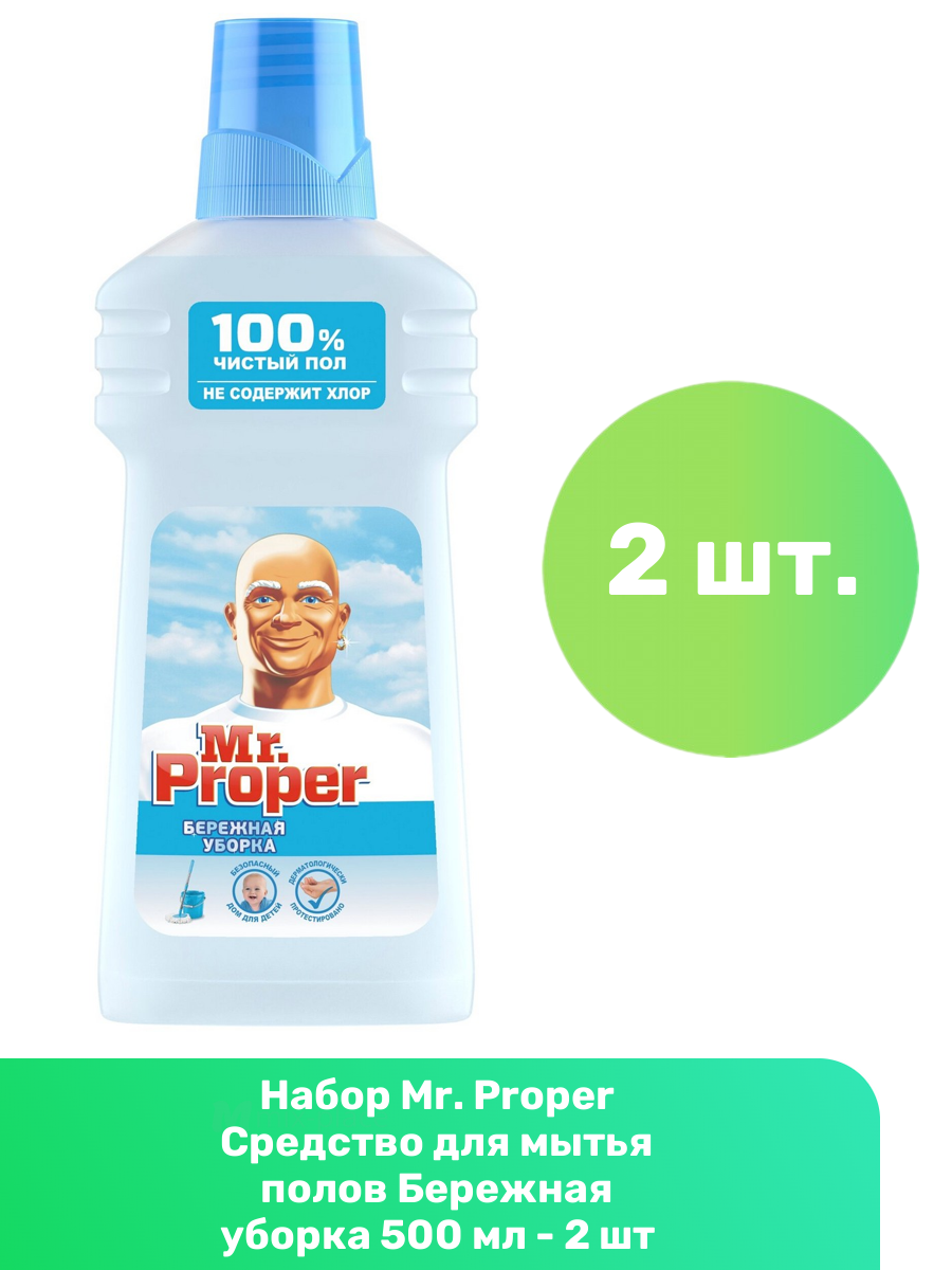 Купить Mr. Proper Средство для мытья полов Бережная уборка 500 мл - 2 шт