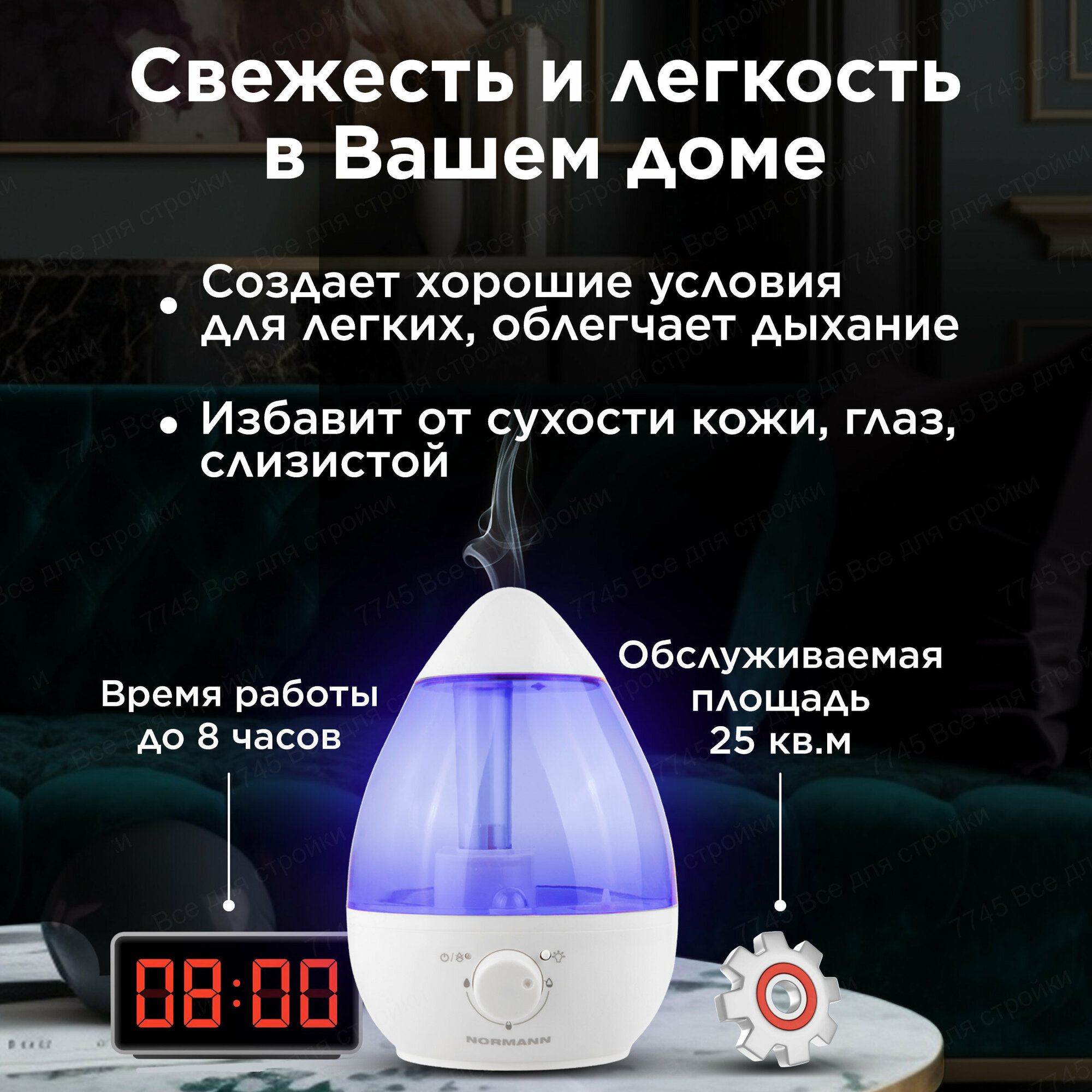 Увлажнитель воздуха для квартиры 3 в 1 NORMANN AUH-011 интересное: