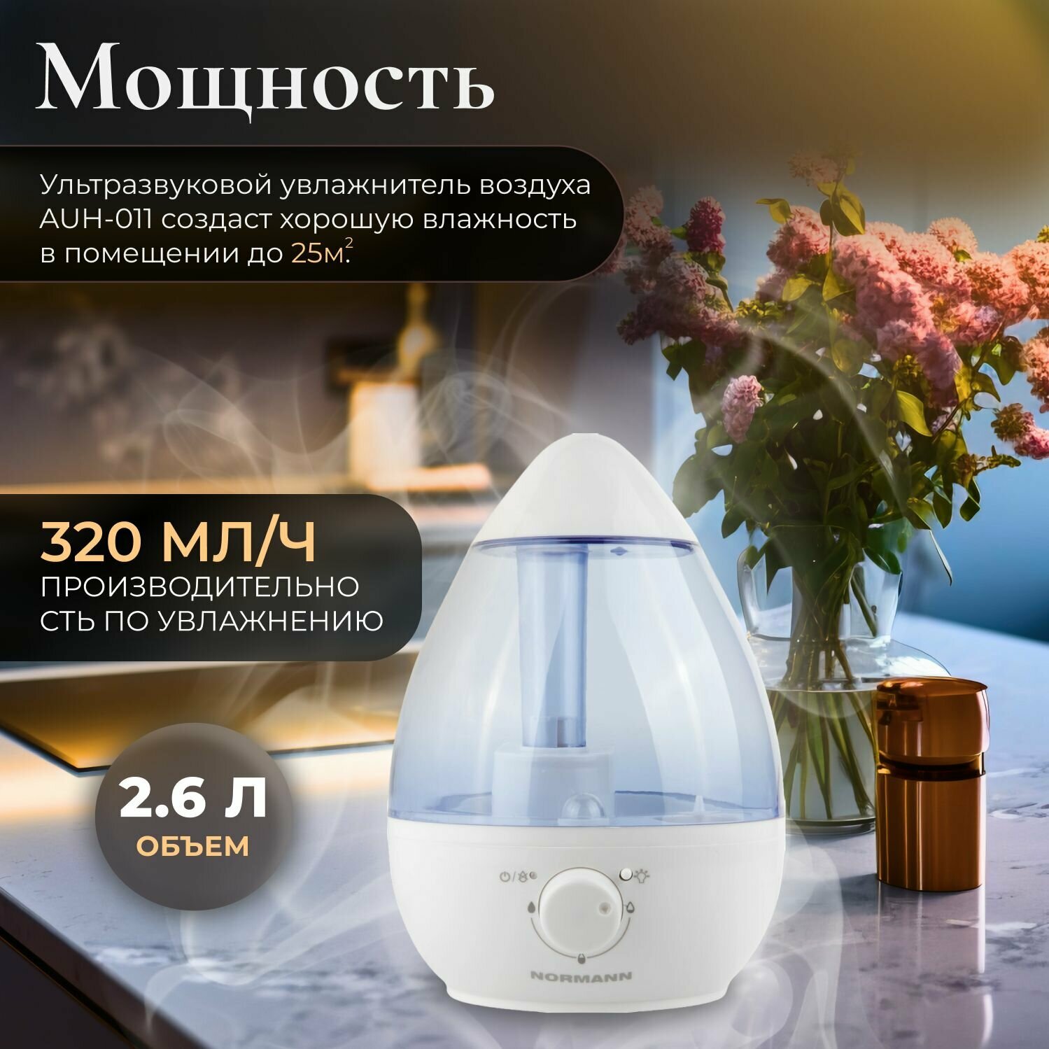 Увлажнитель воздуха NORMANN AUH-011 (25 Вт, 2.6 л, произв. 320 мл/ч, площадь 25 кв.м)
