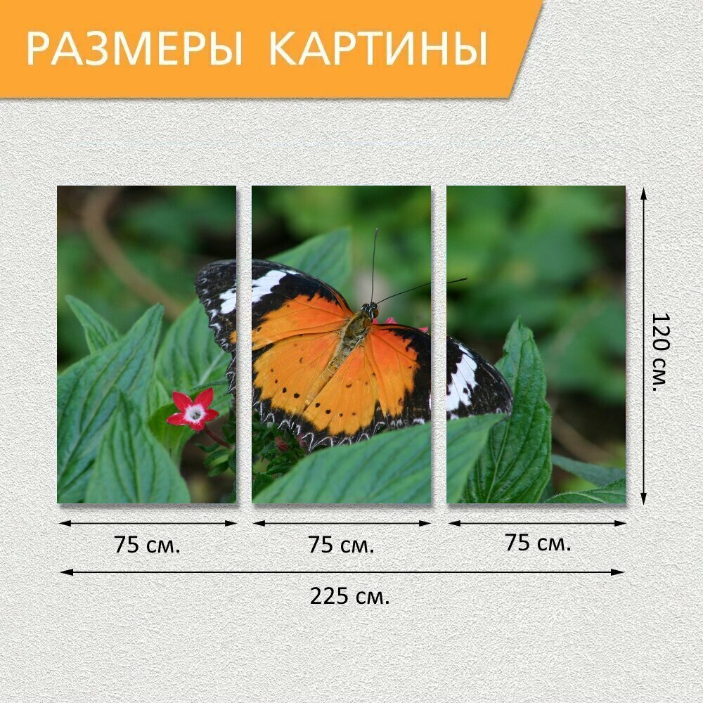 Модульная картина на холсте "Бабочка, синий, природа" триптих на подрамнике 225х120 см. для интерьера интересное: